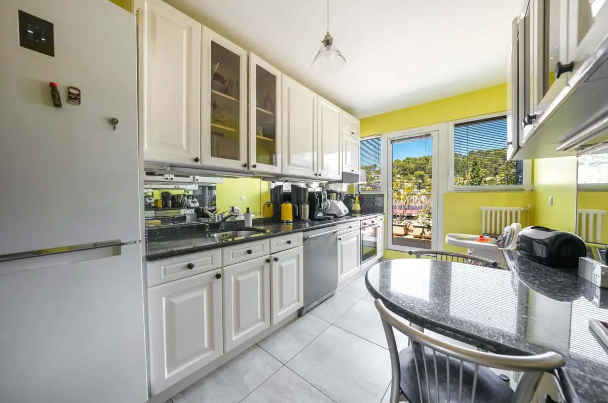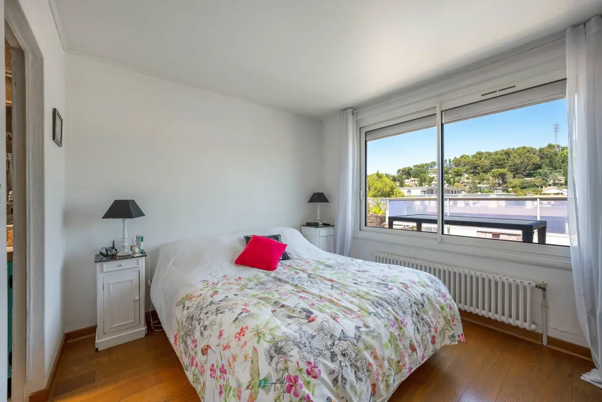 Ce duplex au 6ème et dernier étage comprend un vaste séjour, une suite parentale, deux chambres supplémentaires, une cuisine séparée et de nombreux rangements. Sa terrasse exceptionnelle de 100 m² est sans vis-à-vis. La résidence offre un parc, piscine, tennis, terrain de pétanque, deux caves, parking extérieur et box fermé.