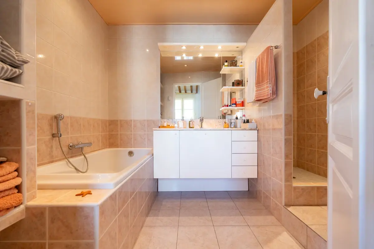 Découvrez un appartement charmant de 98m², avec une entrée accueillante menant à un séjour spacieux et lumineux par un bel escalier, une cuisine équipée et un coin repas. Ce bien propose également deux chambres, un bureau, ainsi que deux salles de bains et un WC.