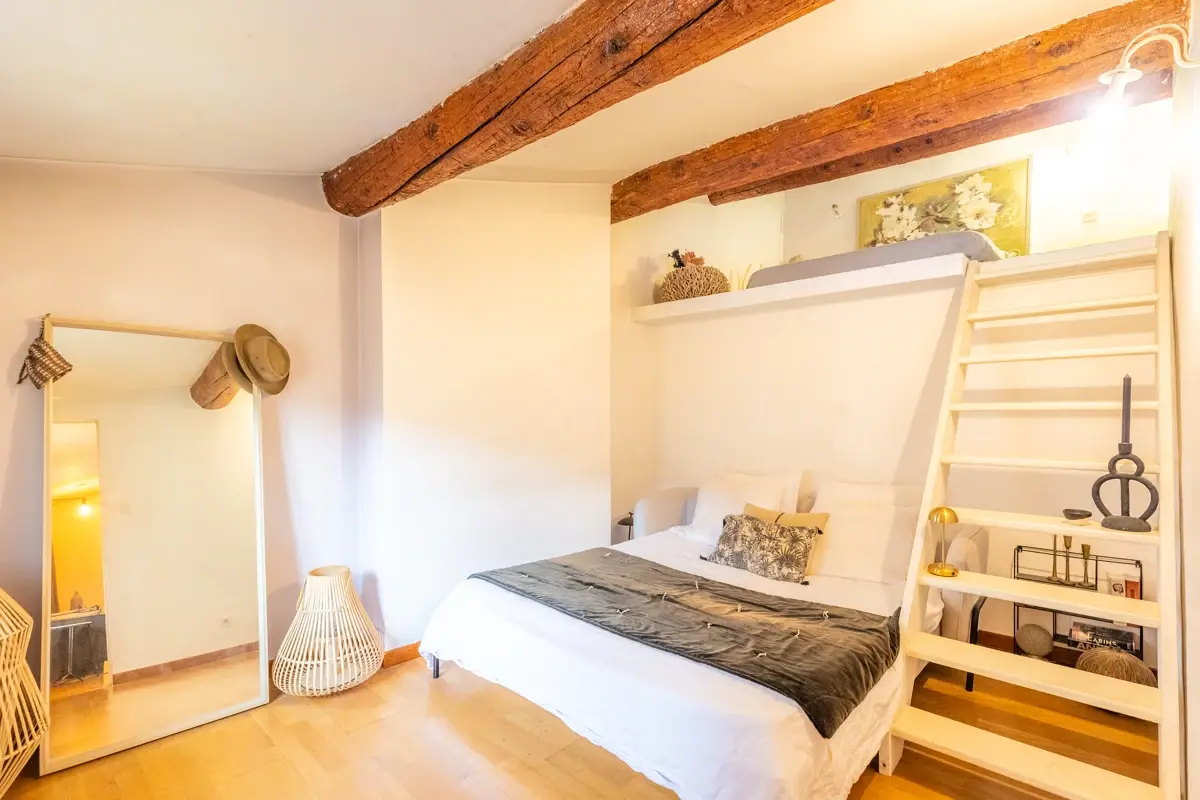 Partie nuit : L'espace nuit comprend deux chambres, idéales pour une petite famille ou pour travailler en télétravail grâce à une pièce modulable en bureau.