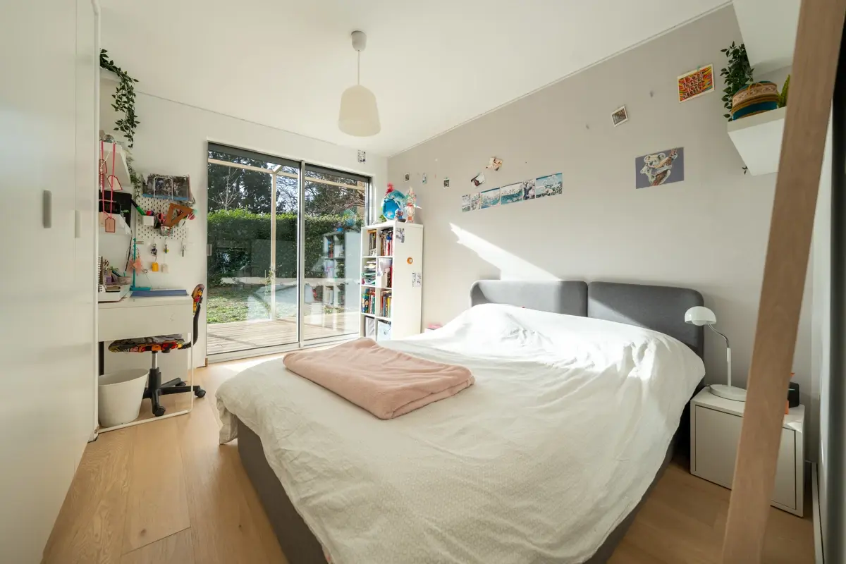 Ce bien séduit par sa luminosité et son agencement harmonieux. En effet, la vaste pièce de vie, composée d'un salon et d'un séjour chaleureux s'ouvre généreusement sur l'extérieur.