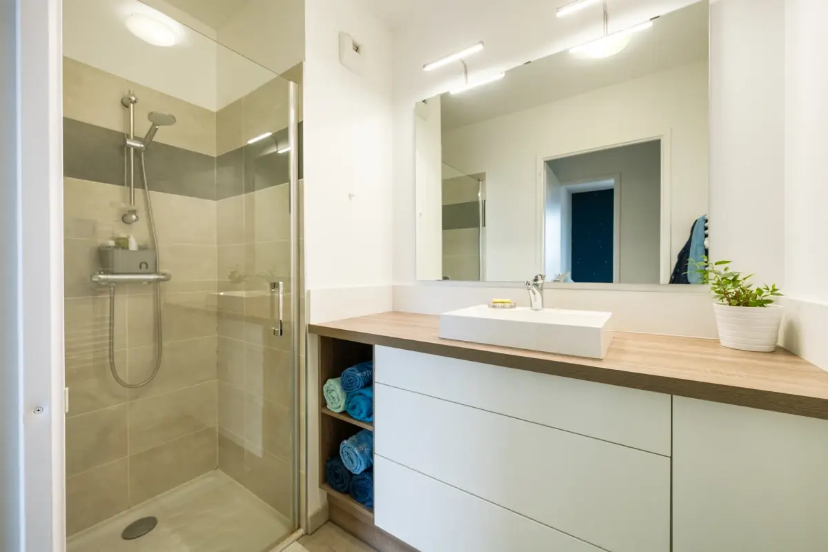 L'appartement se situe dans un secteur calme de la Duranne, à proximité immédiate des commerces, arrêts de bus et axes routiers. L'école élémentaire est à moins de 5 minutes en voiture, la gare SNCF d’Aix à environ 10 minutes et l'aéroport Marseille‑Provence à 20 minutes.