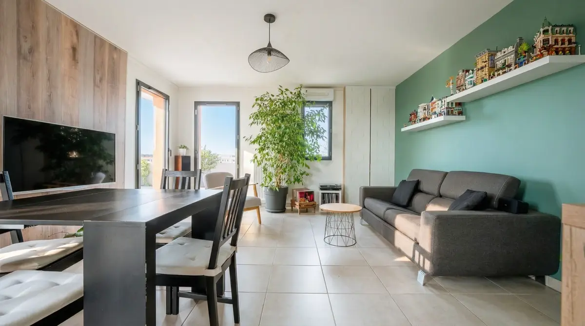 L'appartement d'une surface de 85 m² est en très bon état et se situe dans une résidence récente (2018) avec ascenseur. La pièce de vie lumineuse est exposée sud‑ouest, avec cuisine ouverte et accès sur une vaste terrasse de 69 m².