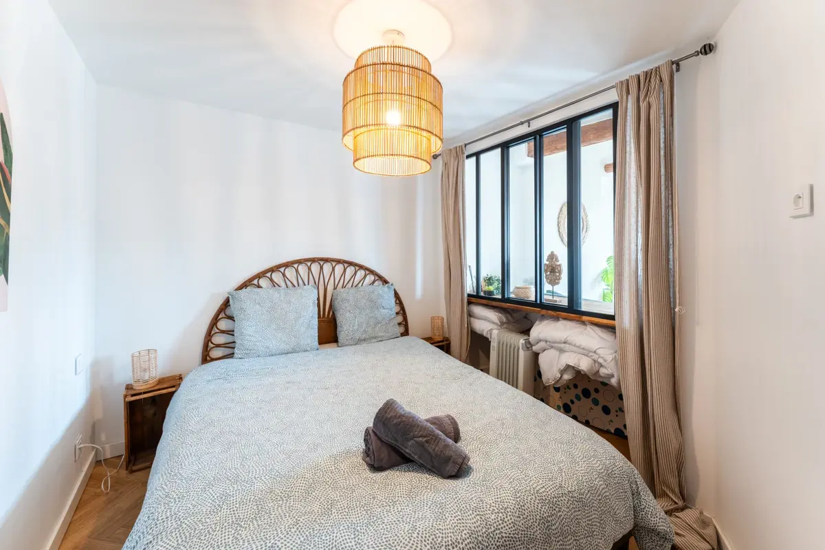 Appartement entièrement rénové d'environ 36 m² comprenant un séjour avec cuisine ouverte et équipée, une chambre en second jour séparée par une verrière ainsi qu'une salle d'eau. WC séparé