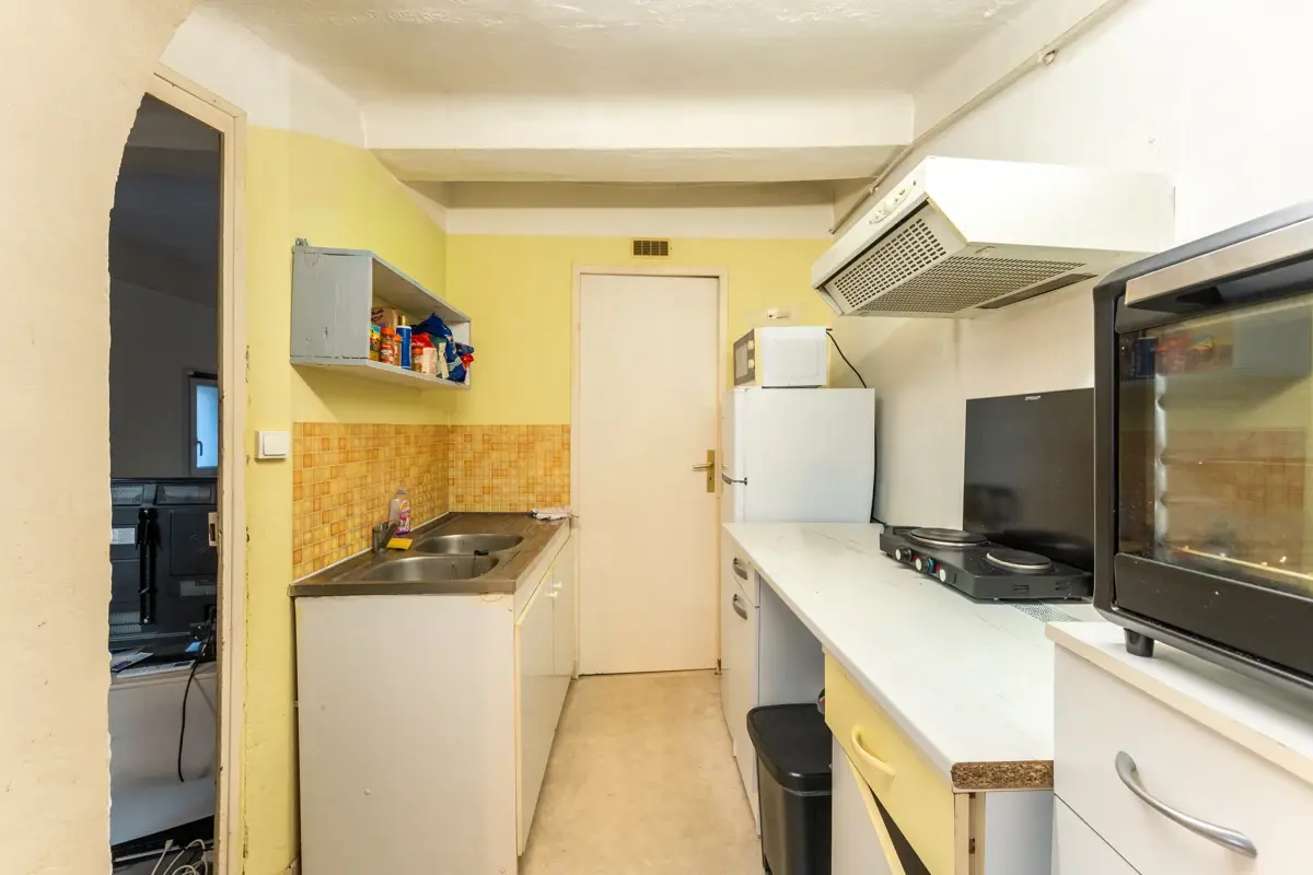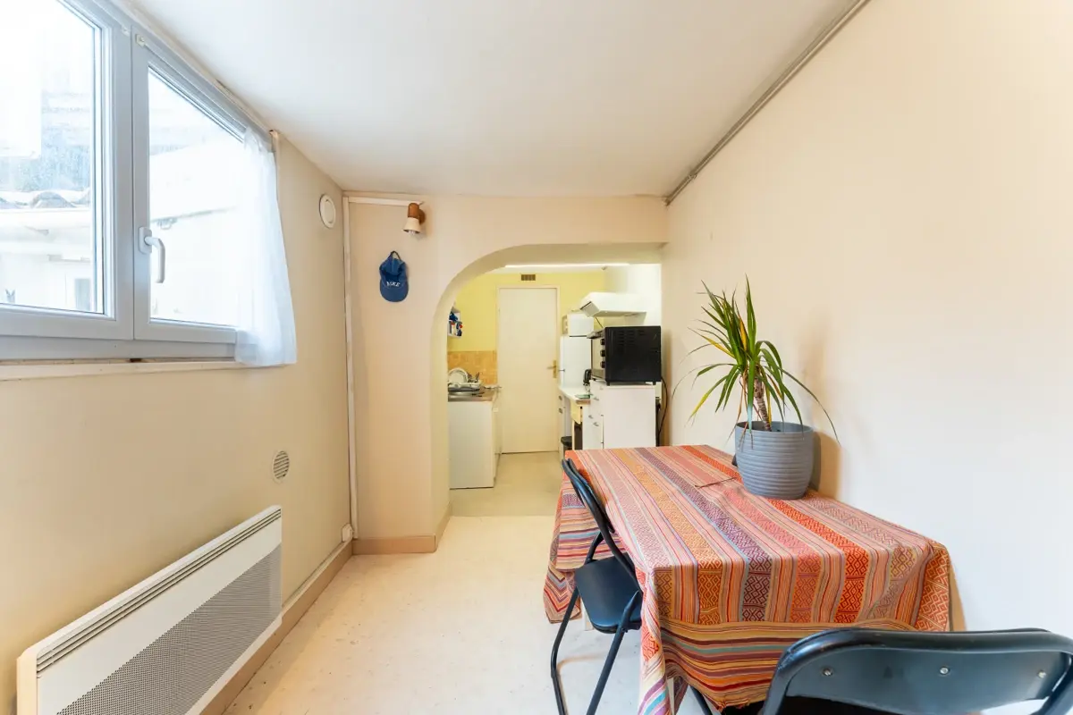🏡 Description intérieure : Au 1er étage d'un petit immeuble de 4 lots aux faibles charges, cet appartement d'environ 27 m² donne sur cour. Il composé d'un séjour/cuisine, d'une chambre climatisée et d'une salle d'eau.