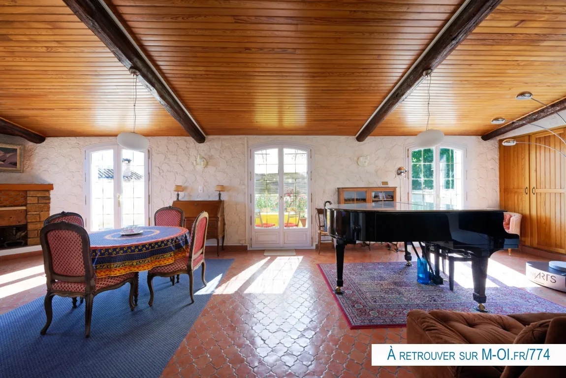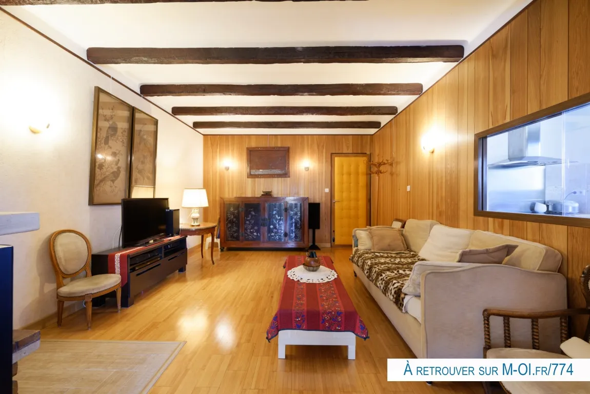 Au 1er étage de cette petite copropriété très bien entretenue, la pièce à vivre propose un espace de 72 m² s’ouvrant sur la terrasse de 140m2 (sans vis à vis) avec une cuisine équipée ainsi qu’un deuxième salon-bibliothèque,