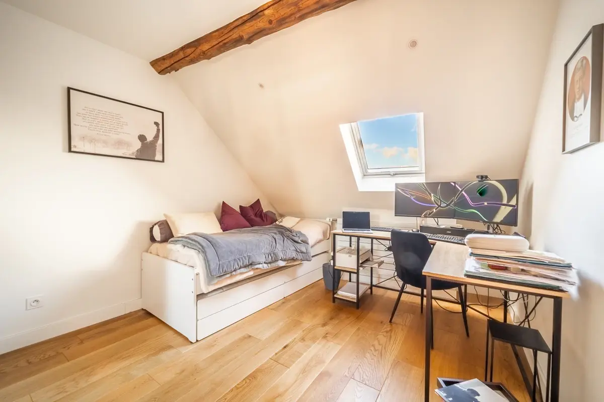 | 4 | Dressing | 10.17 m2 | Ouest | Avec velux donnant sur les toits et la cour intérieur. 0,92m2 au sens de la loi Carrez. |
