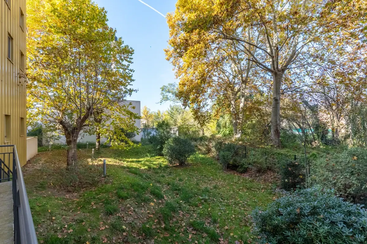 La terrasse privée est idéale pour profiter des soirées estivales. La résidence propose également un jardin arboré.