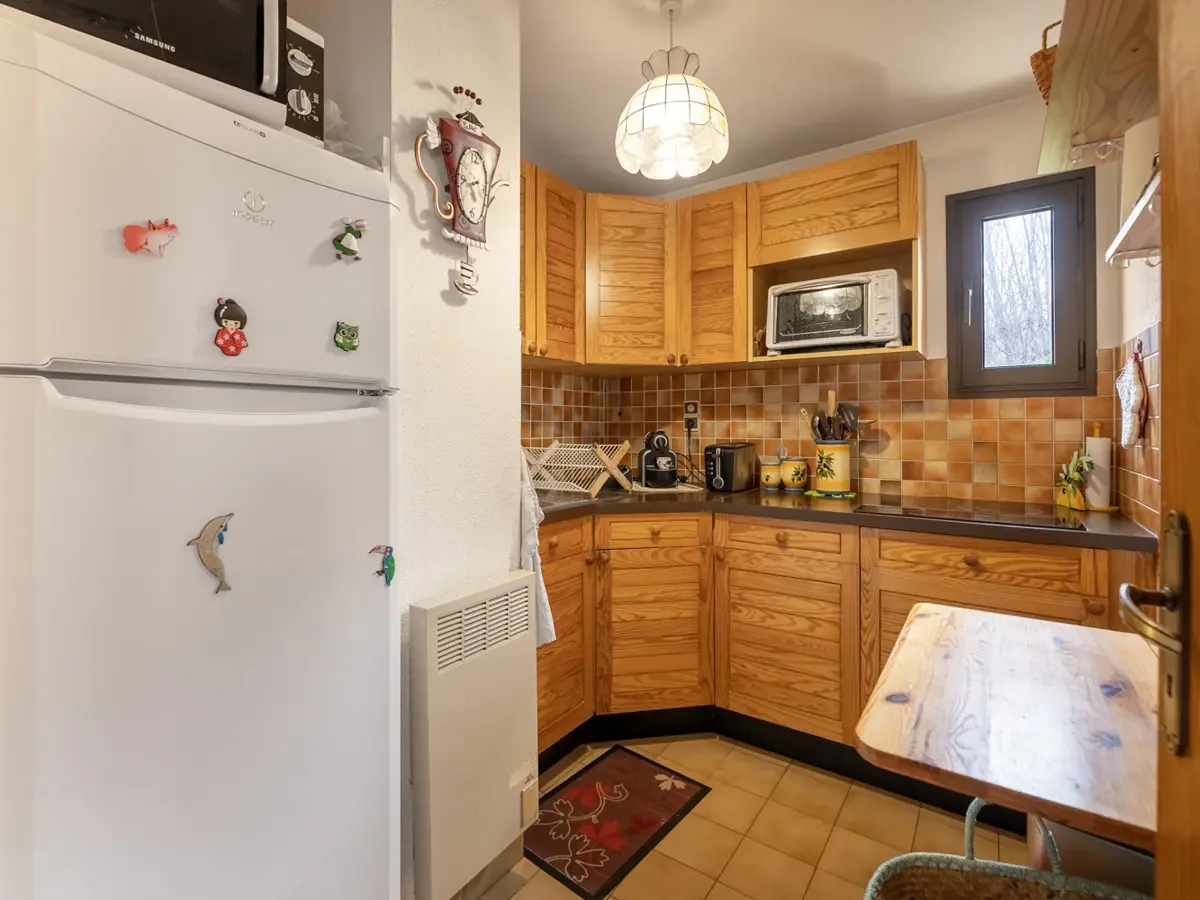 Au premier étage, cet appartement orienté Ouest comprend un séjour avec cheminée, une cuisine séparée, une chambre, un grand coin nuit fermé et une salle d'eau. Ses deux balcons offrent une vue panoramique sur les montagnes et le Lac de Serre-Ponçon. Un garage et une cave complètent ce bien.