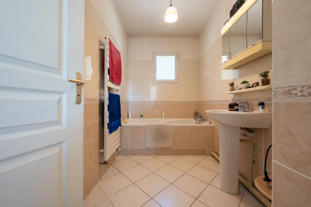 L’entrée dessert une spacieuse pièce de vie lumineuse ouvrant sur une terrasse plein sud de 16 m², idéale pour profiter du soleil tout au long de la journée.