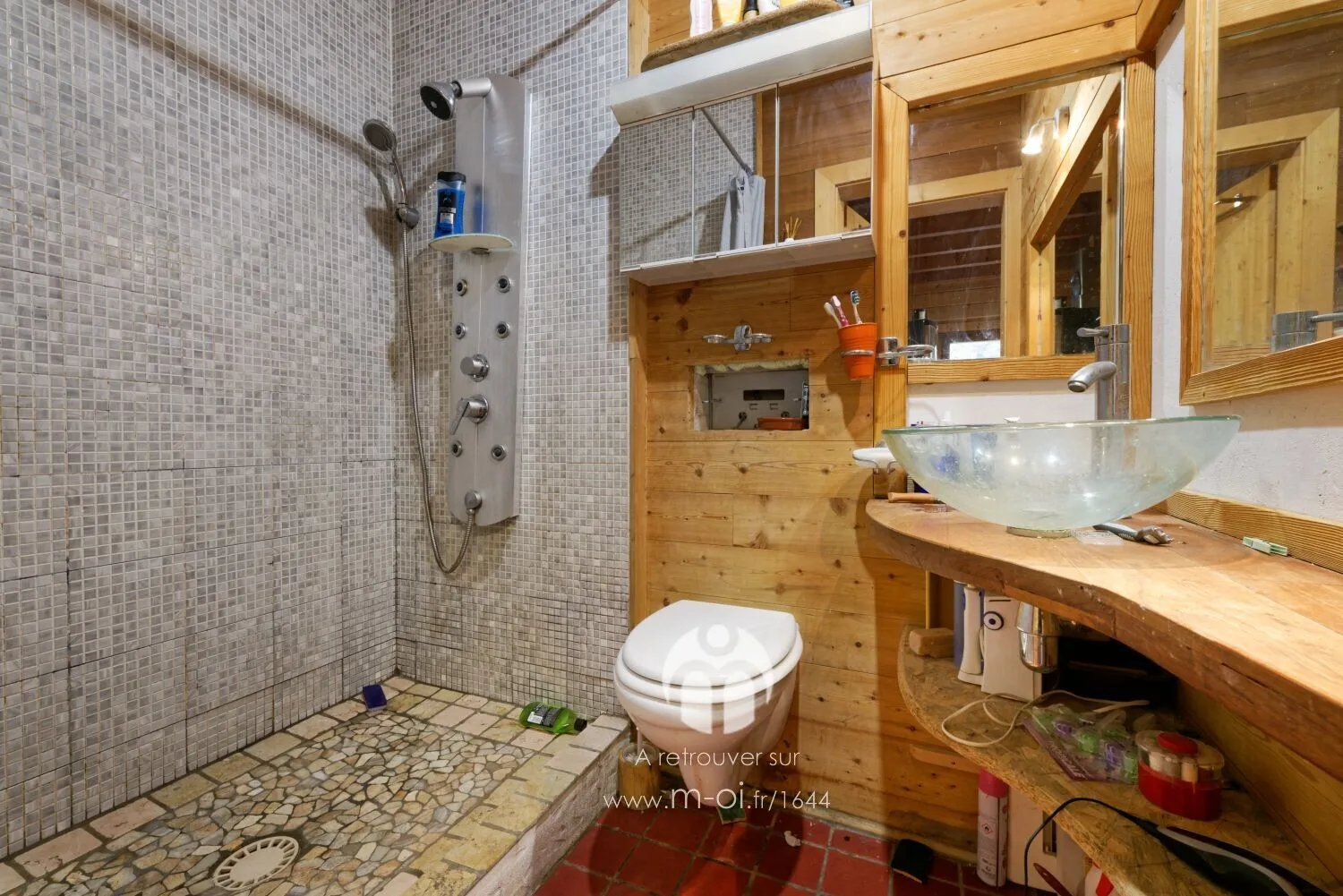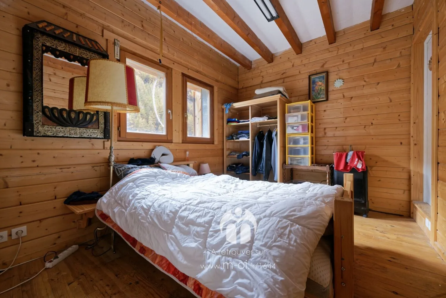 Dans une copropriété de 3 lots, ce bas de chalet de 100m² se compose d’une grande pièce à vivre avec cuisine, trois chambres et deux salles de bains.