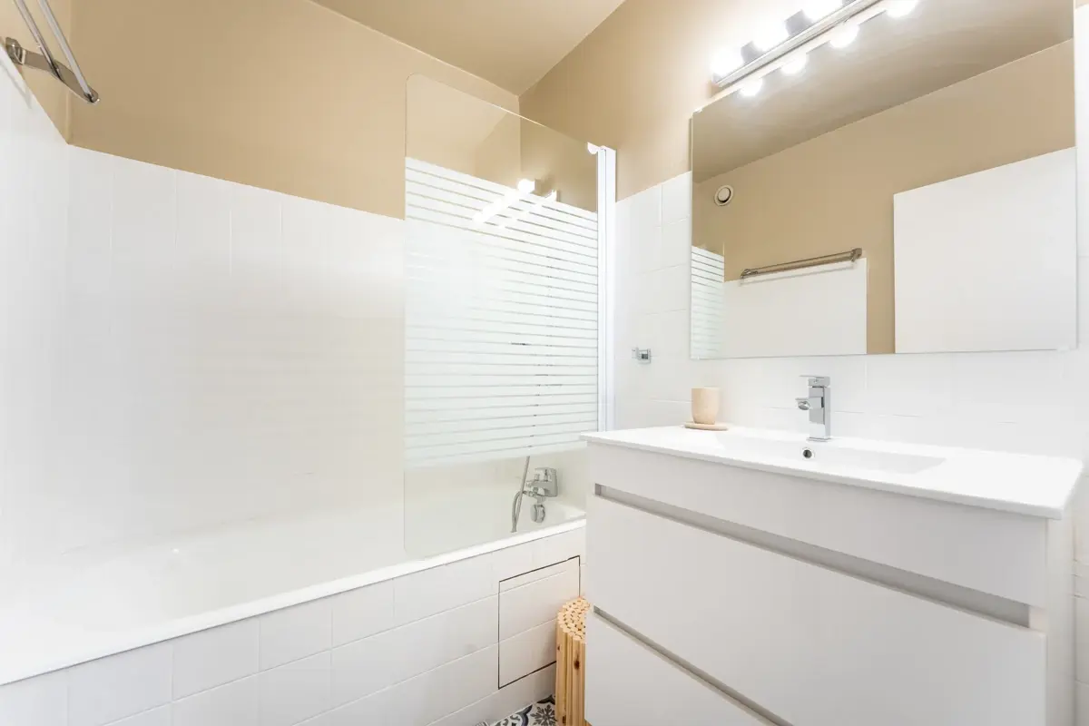 Ce studio de 30 m² a été rénové et offre un séjour-cuisine lumineux qui s'ouvre sur un balcon avec vue sur les montagnes.