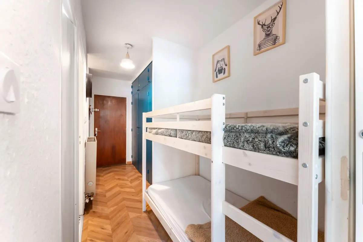 Un espace couchage avec lit double et un coin montagne avec lit superposé complètent l'aménagement intérieur.