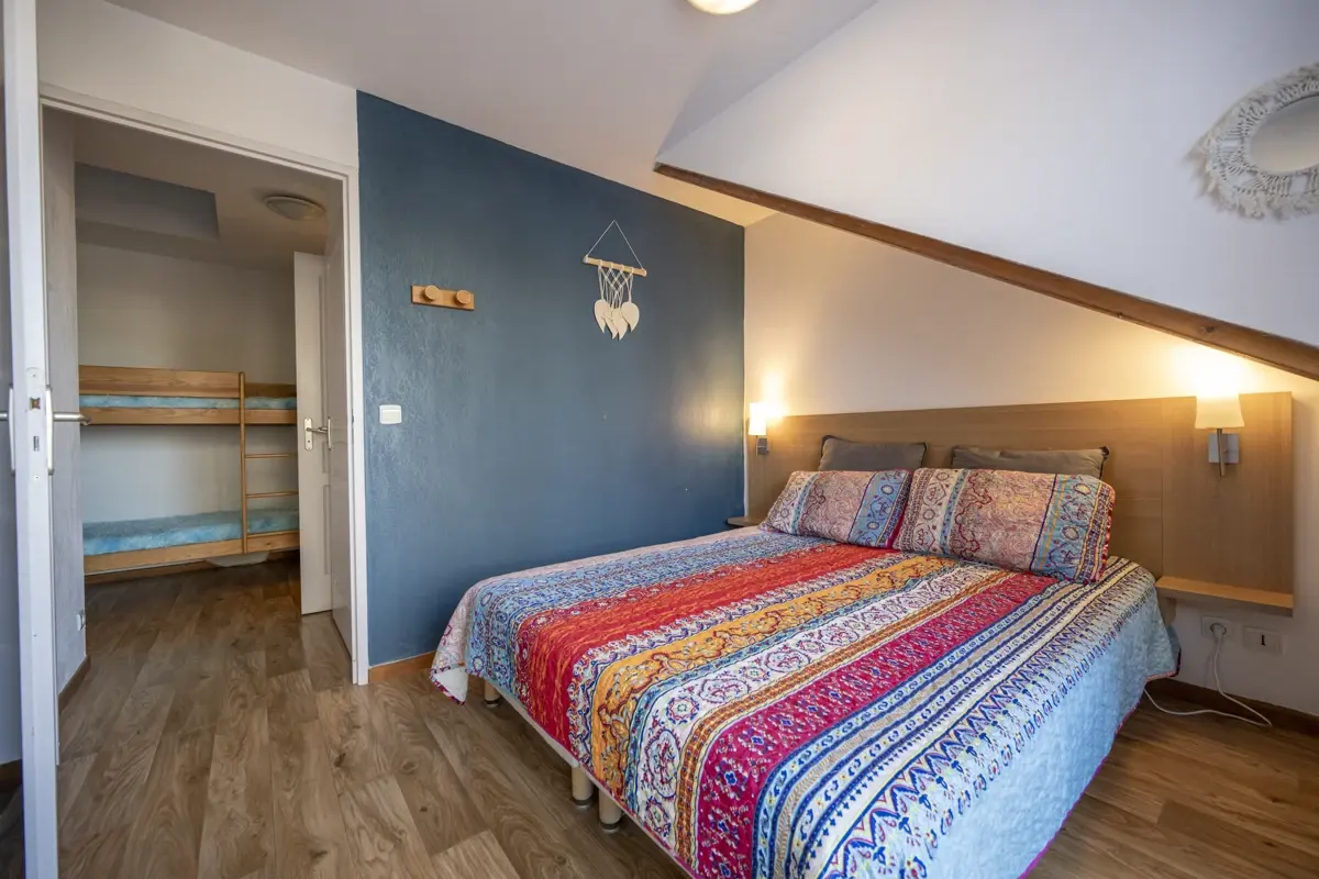 🏡 Description intérieure : Cet appartement de 62 m² au 3ème étage se compose d'une pièce à vivre et sa cuisine équipée ouvrant sur un premier balcon et sa vue sur les montagnes environnantes.Une chambre avec lits supperposés et une salle de douche avec wc complètent ce niveau . A l'étage , on retrouve 2 chambres avec lits doubles , dont une avec son propre balcon , ainsi qu'un coin nuit avec lits supperposés ,une salle de bain et ses sanitaires.