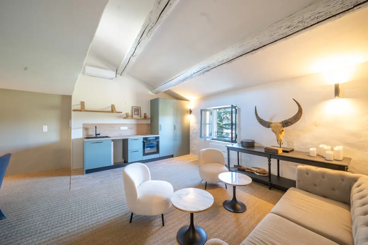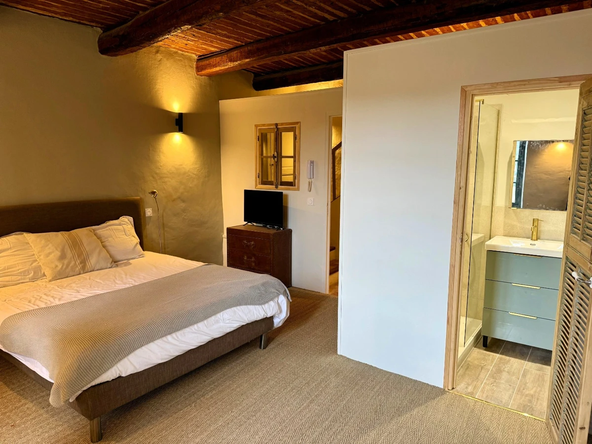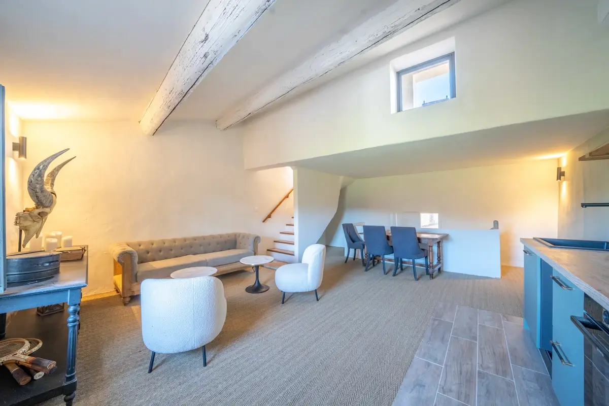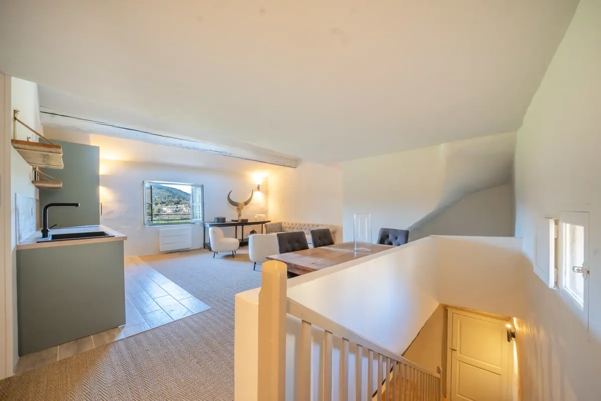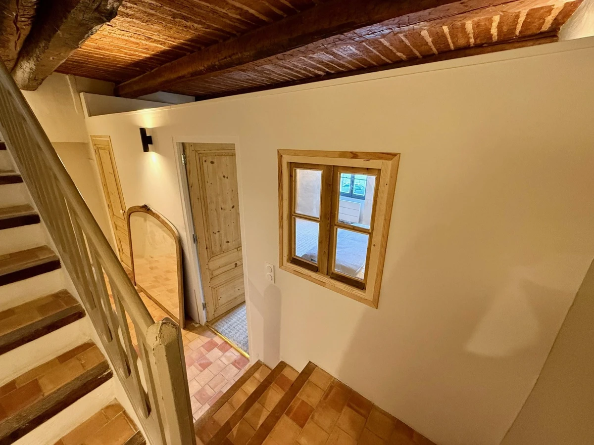 Ce duplex occupe les 2ᵉ et 3ᵉ étages d’une authentique maison de village entièrement rénovée. Ses 55 m² habitables marient avec harmonie le cachet provençal et le confort contemporain, dans une atmosphère pensée pour le quotidien. Le premier niveau accueille une belle chambre lumineuse avec salle d’eau ainsi que des WC séparés. À l’étage supérieur, une élégante pièce de vie baignée de lumière s’ouvre sur une cuisine moderne et conviviale, offrant un accès direct à la terrasse sur le toit.