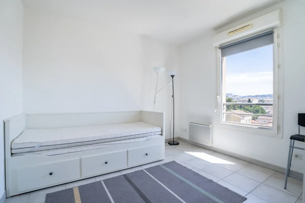 Situé dans une résidence de 2010, sécurisée et au calme, cet appartement est proche des commodités et des accès autoroutiers entre la Capelette et la Timone.