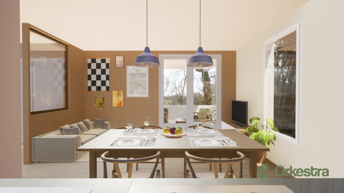 Celui-ci propose une pièce de vie aérée donnant accès à la terrasse exposée Sud-Est, sans vis-à-vis, offrant une vue dégagée et arborée. Se trouvent également une cuisine ouverte meublée et équipée, deux chambres, une salle d'eau et un WC séparé.