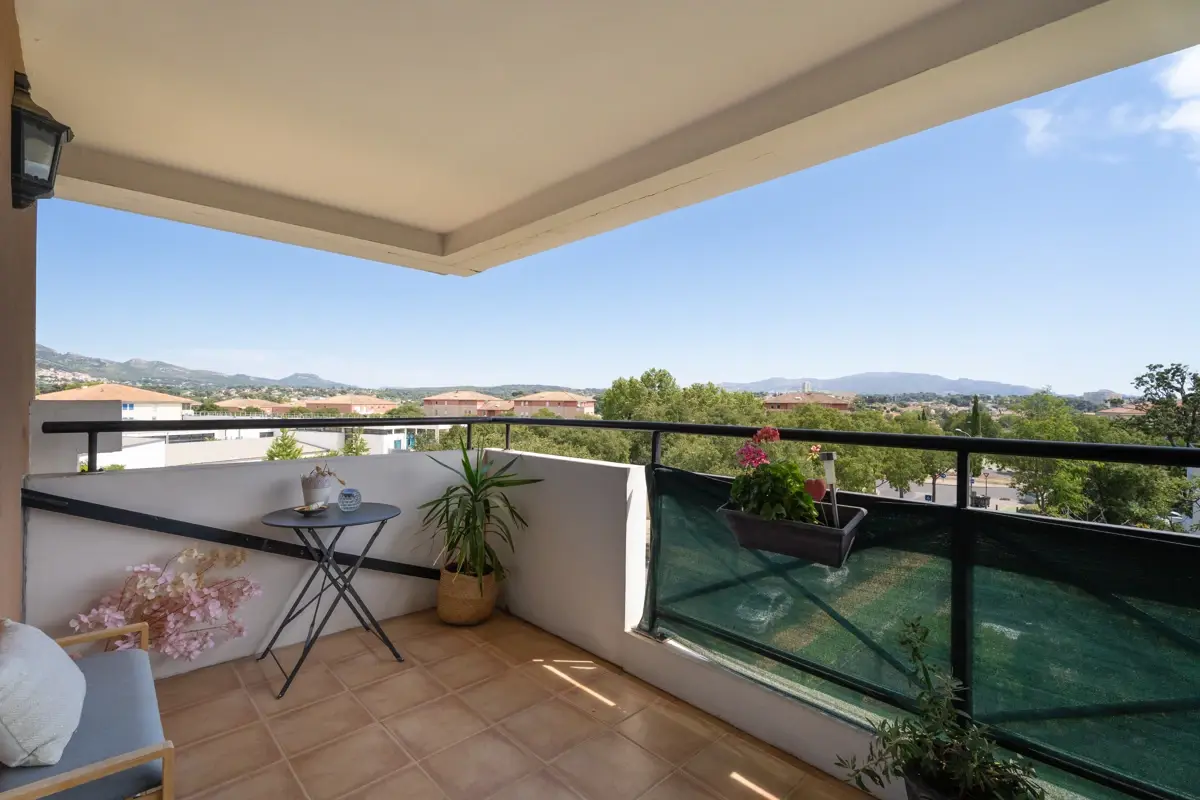 Profitez d'une grande terrasse de 10 m² exposée plein sud, sans vis-à-vis, offrant une vue dégagée sur les collines.