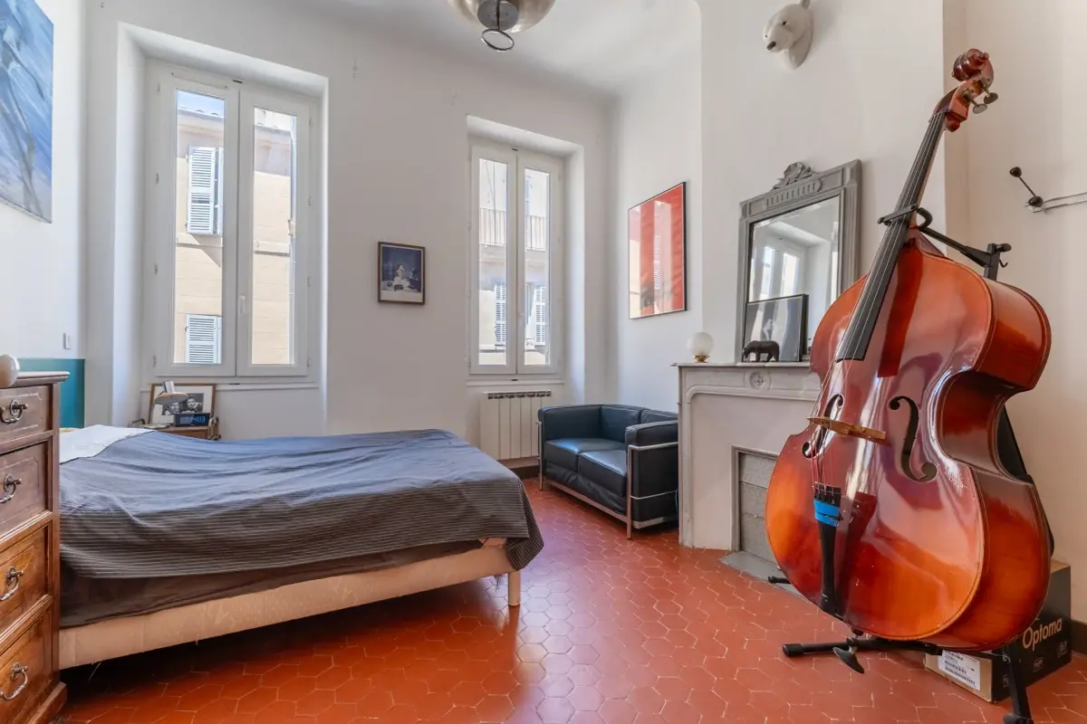 Cet appartement cocon met en avant tous les codes du charme de l'ancien, alliant ainsi une belle hauteur sous plafond, moulures, cheminées et tomettes !