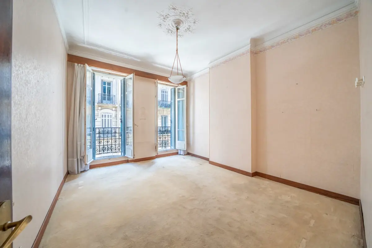 🏠 Description intérieure : D’une superficie de 107,65 m², cet appartement traversant situé au 1er étage d’un immeuble de caractère édifié en 1912, est accessible par un ascenseur. Il offre une pièce de vie lumineuse s'ouvrant sur un balcon et une loggia, ainsi qu'une cuisine indépendante donnant accès à la cour privative et le garage.