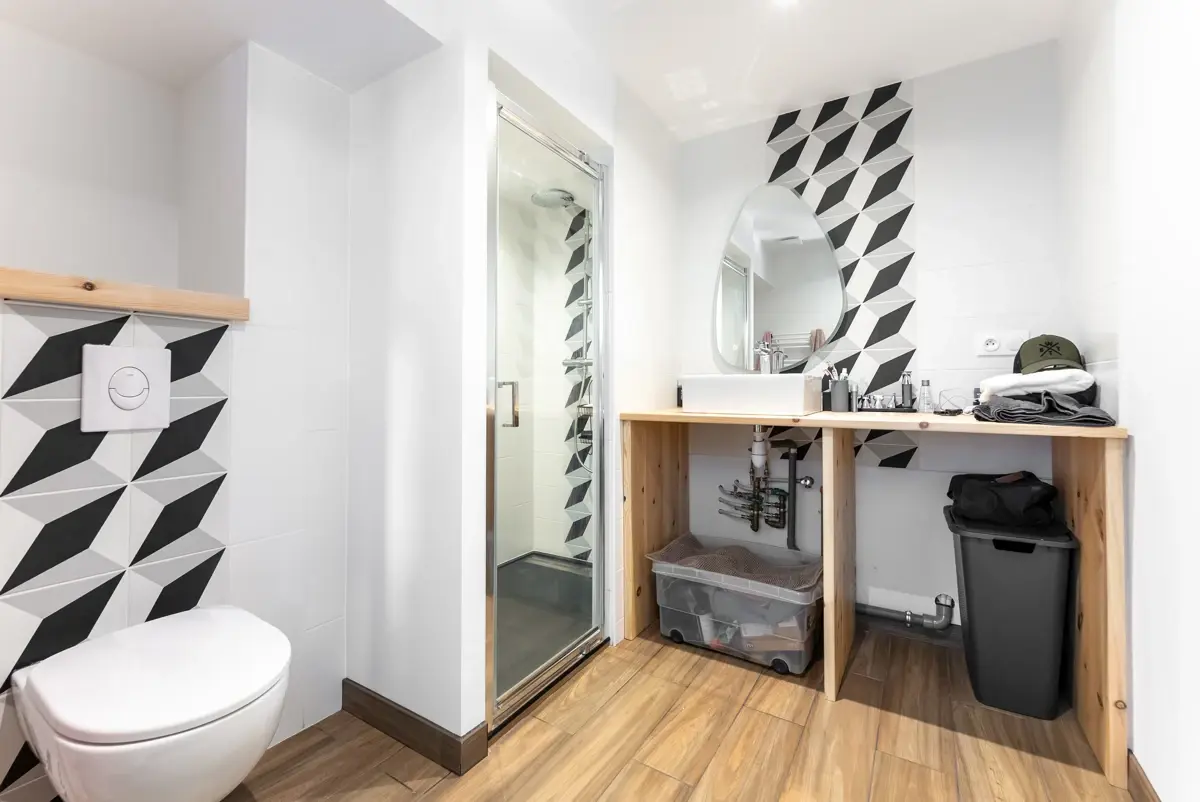 🌙 Partie nuit : L’espace nuit comporte deux chambres agencées pour optimiser la tranquillité de chacun. La salle de bain et des rangements complètent l’ensemble.