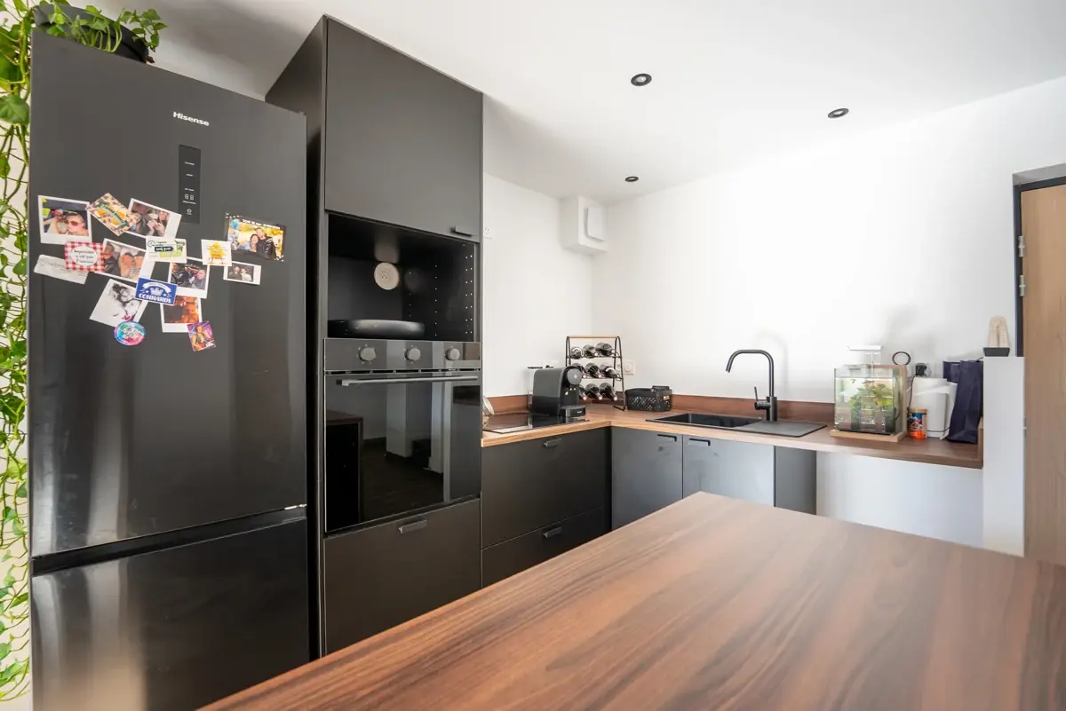 🏠 Description intérieure : Situé au 1er étage d’un petit immeuble, ce bien rénové de 57 m² offre un espace de vie confortable et fonctionnel. Le séjour profite d’un accès direct au balcon exposé sud , idéal pour profiter de la lumière naturelle. La cuisine ouverte et son ilot optimise la convivialité de la pièce à vivre.