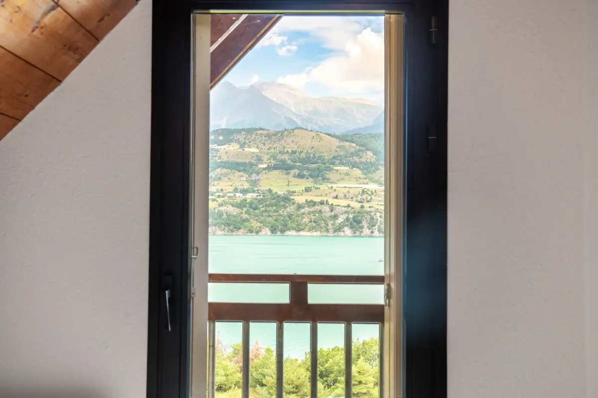 Situé en bordure du Lac de Serre-Ponçon, cet appartement se trouve à quelques pas des plages et du centre du village de Savines-le-Lac et à seulement 10 minutes d'Embrun. Cet appartement au dernier étage vous offre plusieurs vues dominantes sur le Lac et les montagnes environnantes. Cet emplacement privilégié vous permet de profiter pleinement du calme de cet emplacement et du paysage.