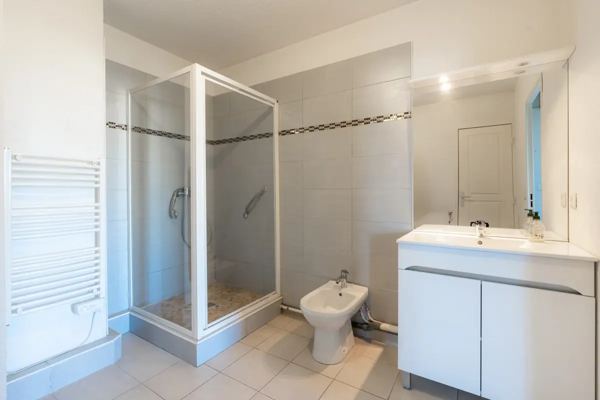 Conçu aux normes PMR, l’appartement est doté de la climatisation réversible dans la partie jour et nuit. Une place de stationnement en sous-sol vient compléter ce bien.