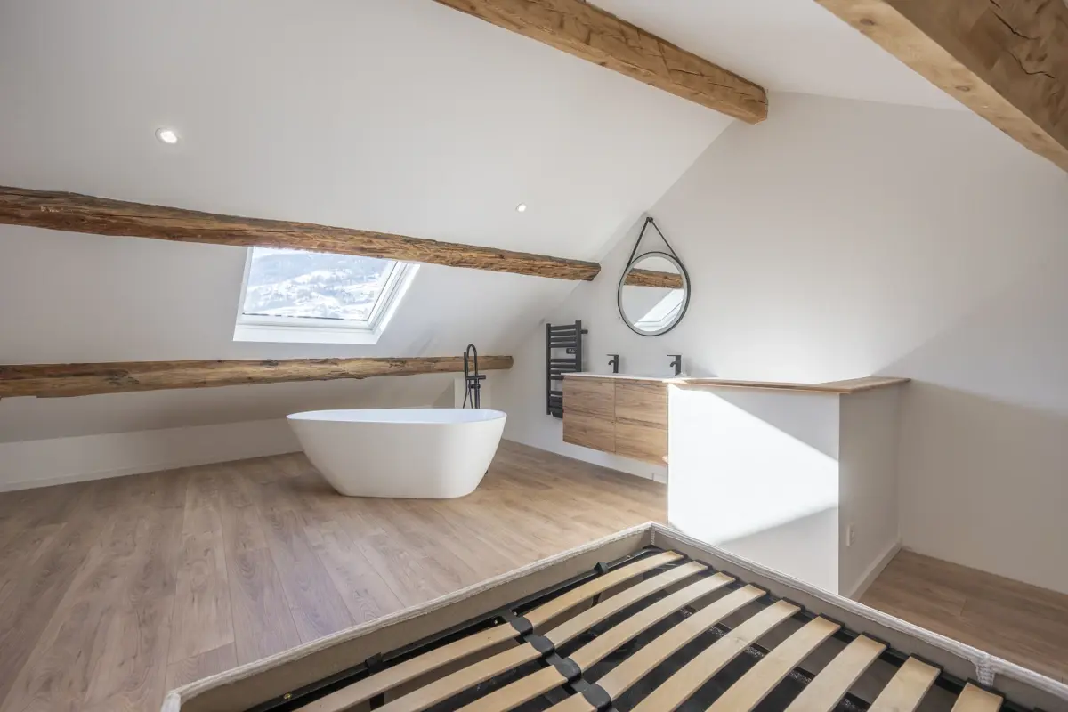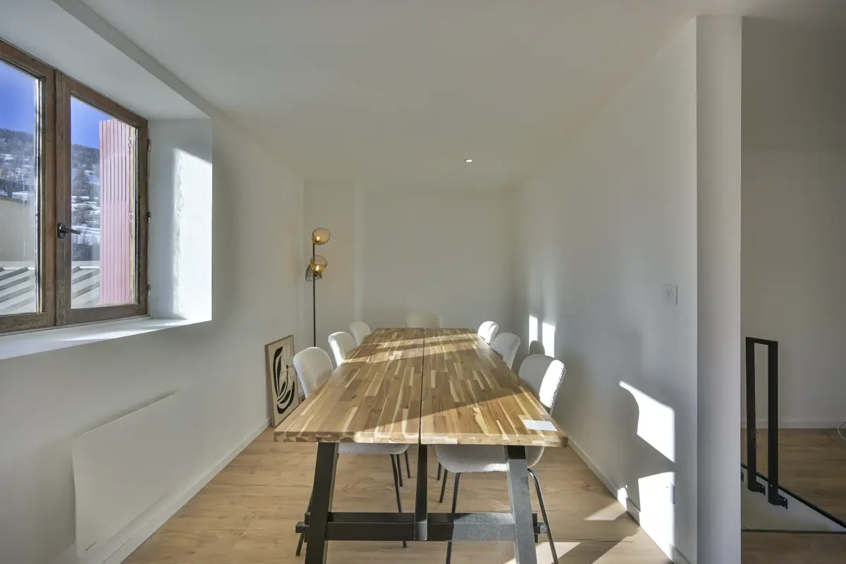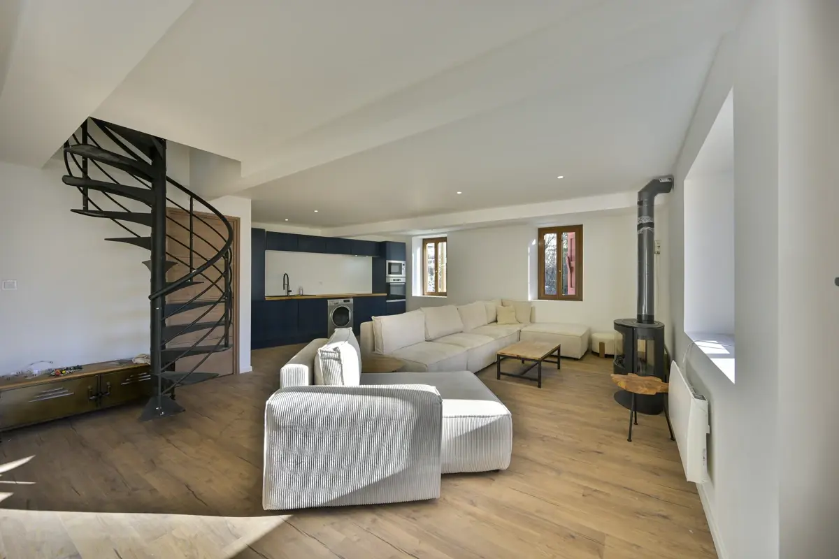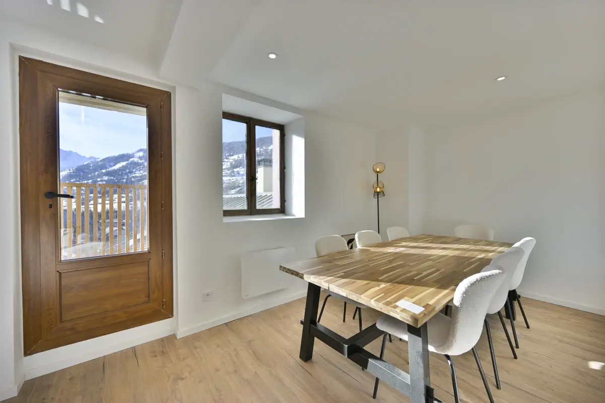 Situé au coeur de Saint Marcellin , cet appartement , dans une maison de village entièrement rénovée avec goût , offre 151 m2 dont 103 m2 carrez , répartis sur 3 niveaux. A 5 minutes en voiture des départs de pistes et des commerces , il permet de béneficier à la fois du calme et des infrastructures de la station toute proche.