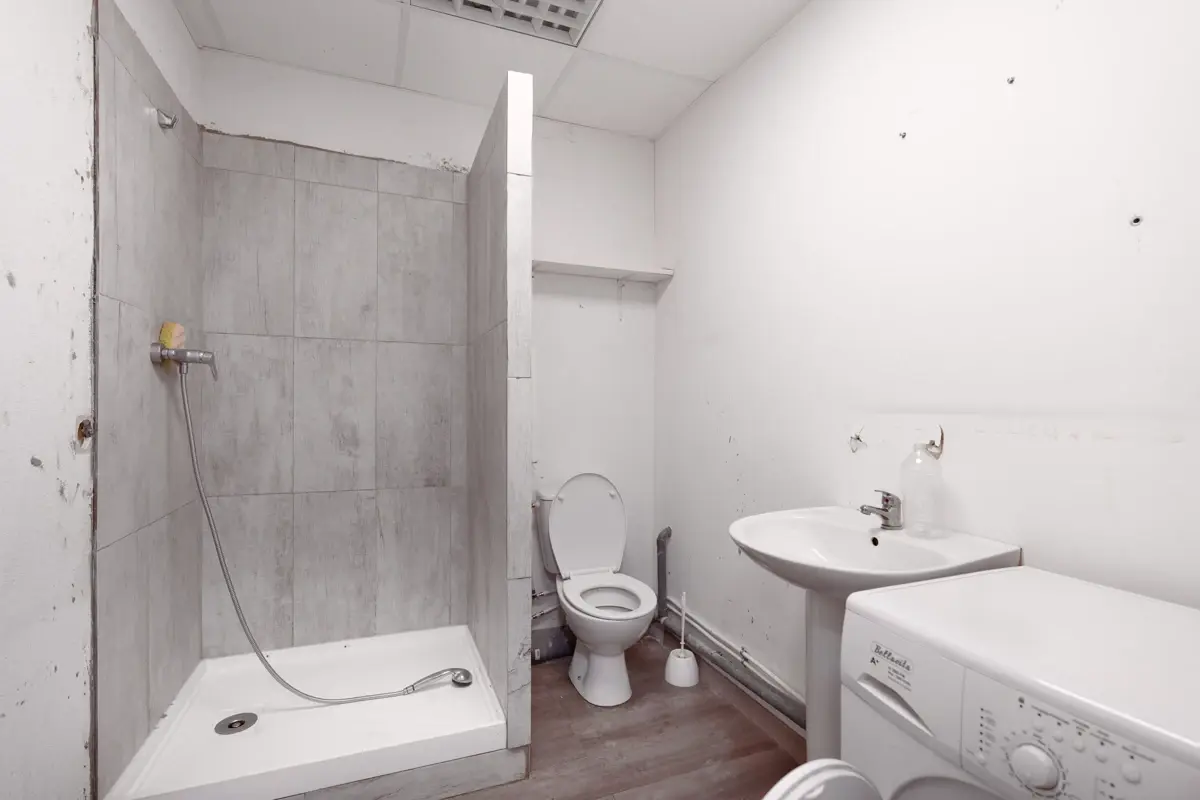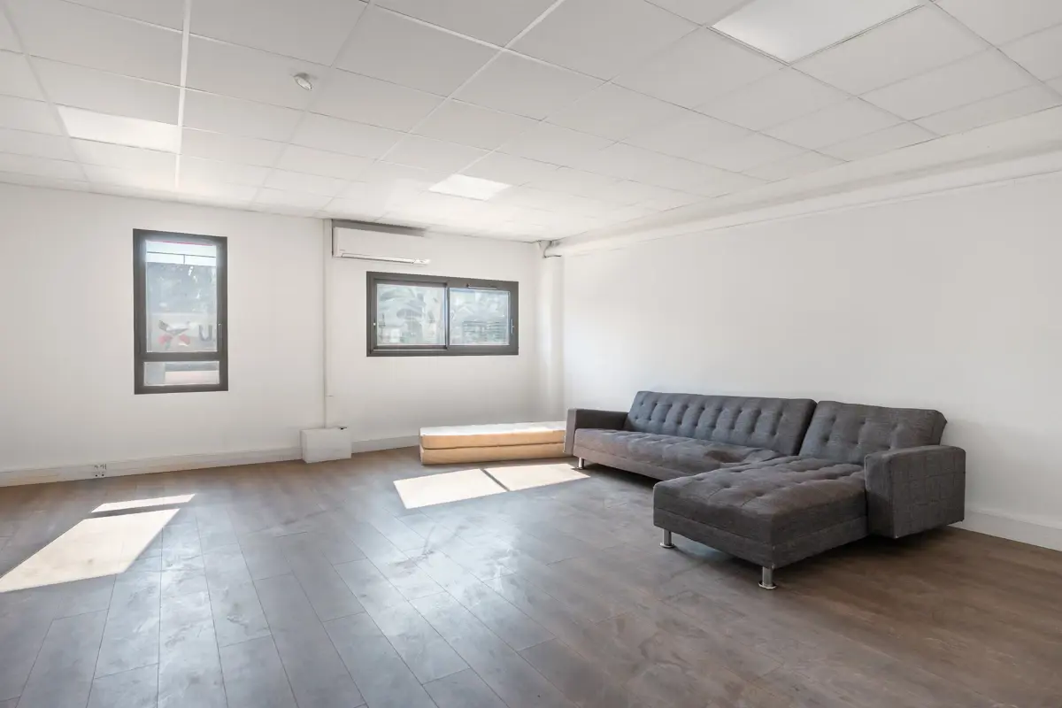 D'une surface totale de 254 m², le rez-de-chaussée de 132 m² comprend un espace d'accueil, une zone dédiée aux activités du locataire, des sanitaires avec douche et WC, ainsi qu'une kitchenette. L'étage dispose d'un espace bureau et d'une mezzanine ouverte sur le rez-de-chaussée.