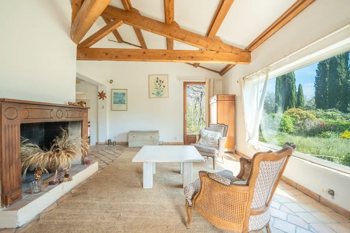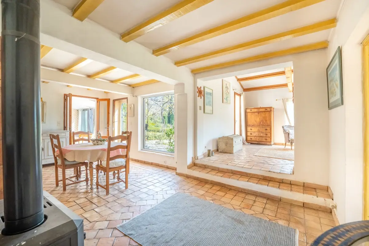 Implantée sur un magnifique terrain arboré de 3 800 m², la propriété offre une vue dégagée dominante et de vastes espaces extérieurs propices à la détente ou à la réception.