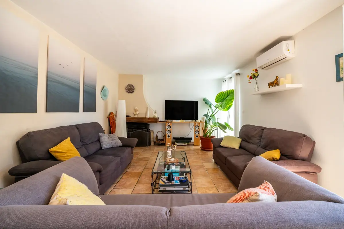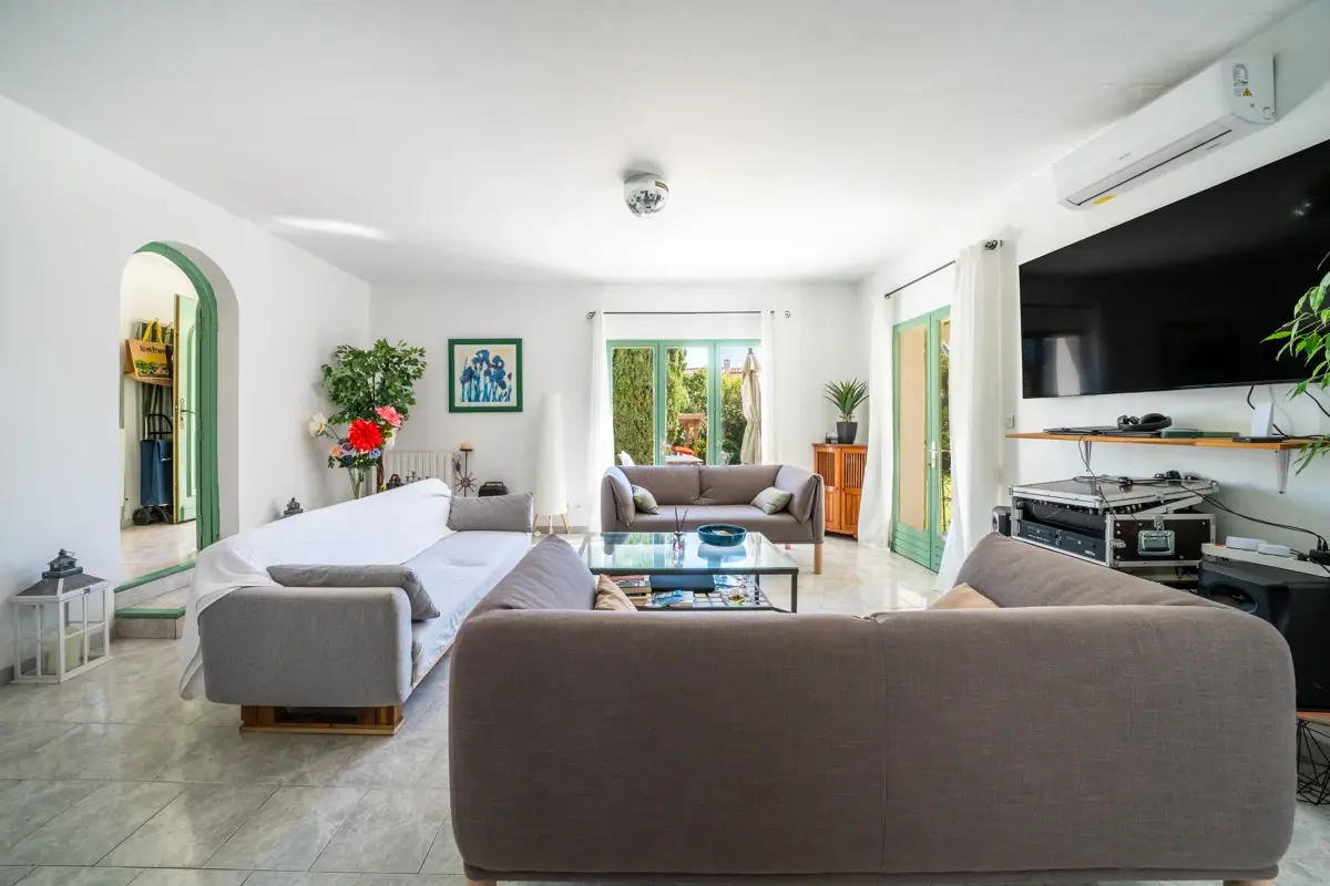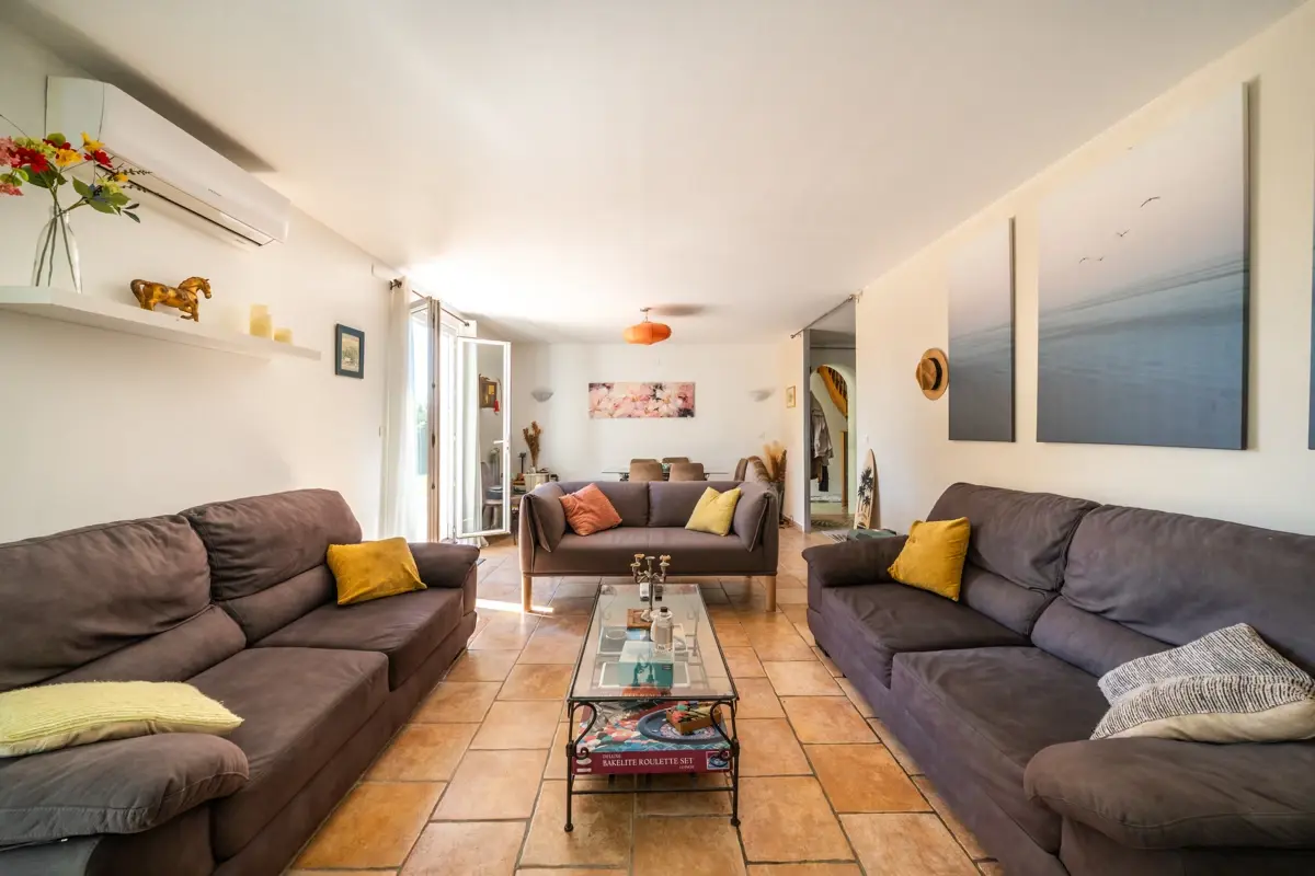 Maison de 240 m² construite en 1980, composée de 8 pièces et configurée en deux habitations communicantes, facilement séparables. L’une comprend au rez-de-chaussée un séjour lumineux avec cheminée ouvrant sur une cuisine indépendante équipée, un bureau et une salle à manger; climatisation réversible. La seconde dispose d’un salon/séjour avec cheminée donnant accès à une terrasse et d’une cuisine séparée.