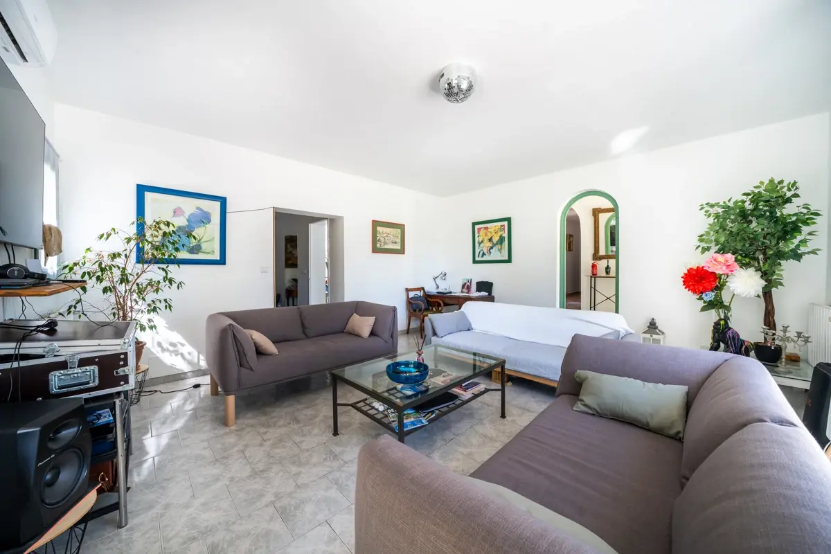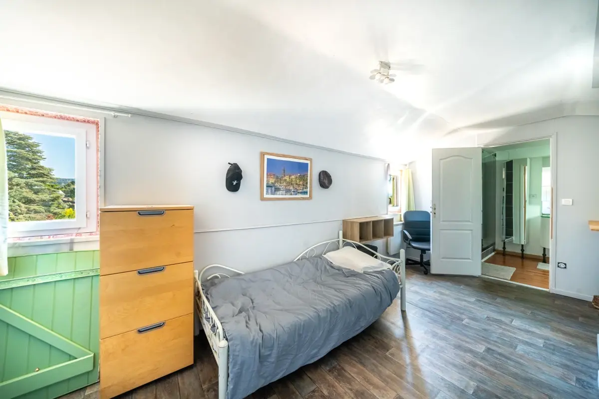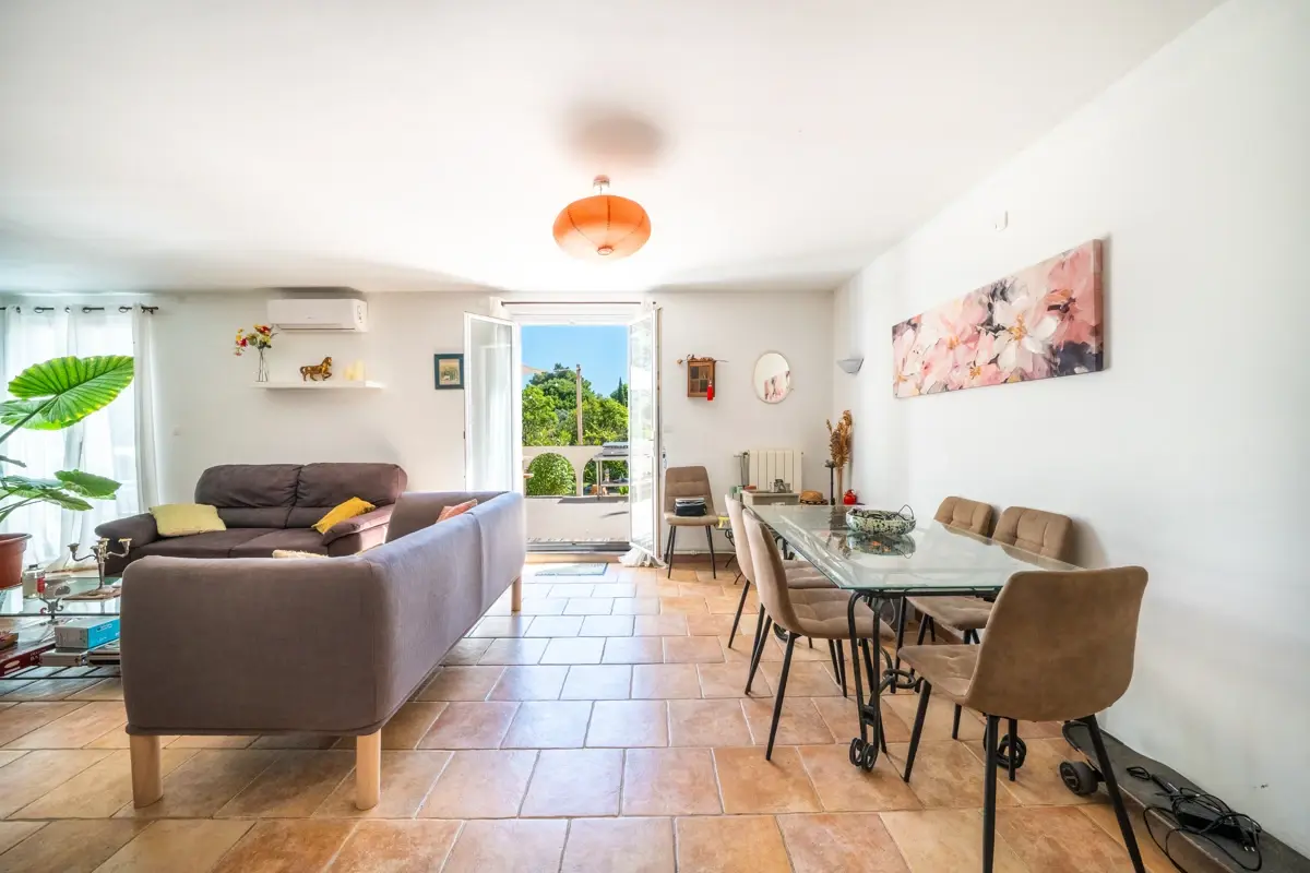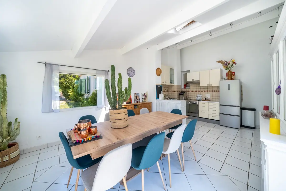 Maison de 240 m² construite en 1980, composée de 8 pièces et configurée en deux habitations communicantes, facilement séparables. L’une comprend au rez-de-chaussée un séjour lumineux avec cheminée ouvrant sur une cuisine indépendante équipée, un bureau et une salle à manger; climatisation réversible. La seconde dispose d’un salon/séjour avec cheminée donnant accès à une terrasse et d’une cuisine séparée.