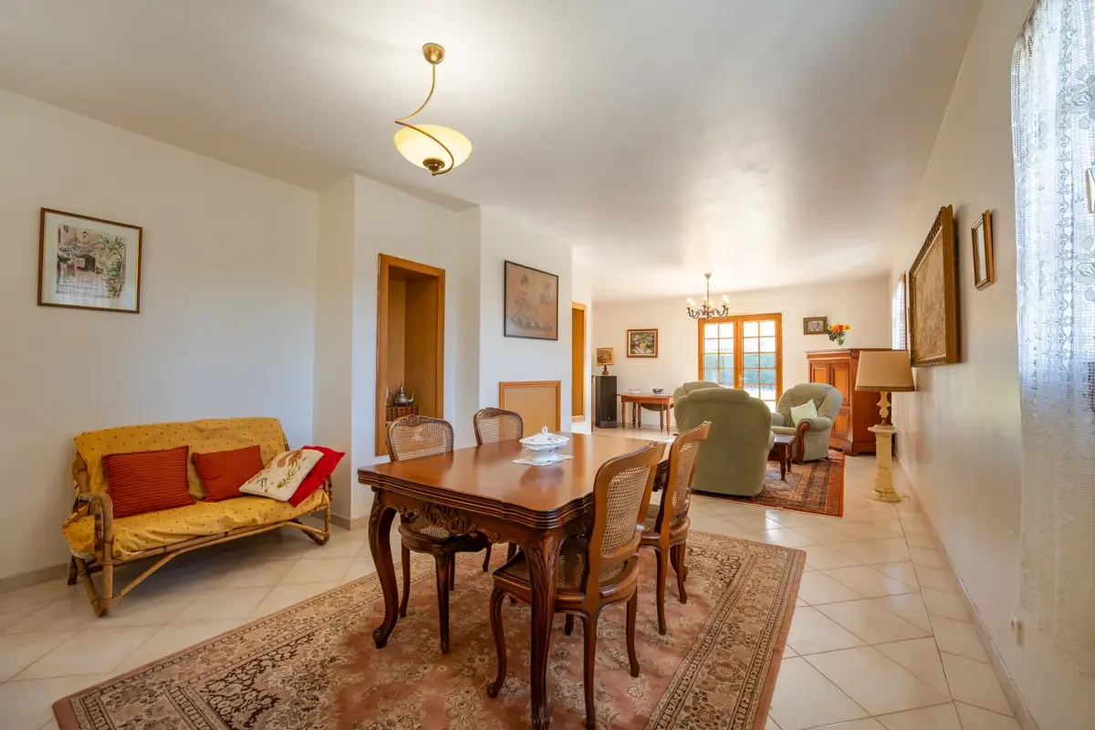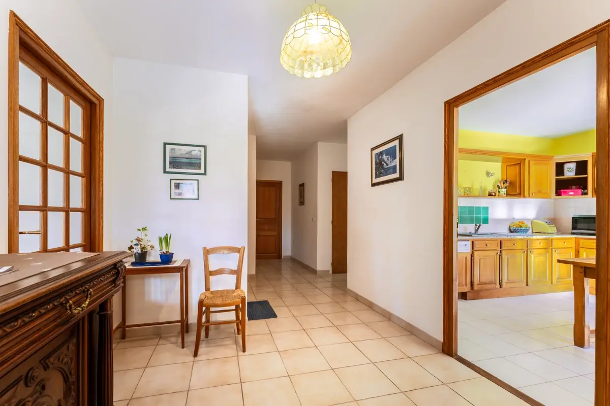 Construite sur un terrain de 2500 m², la maison offre une surface habitable de 170 m² avec une possibilité d'extension de 35 m² et un raffraichissement selon vos goûts. Le rez-de-chaussée comprend une cuisine, un séjour, et un bureau s'ouvrant tous sur la terrasse et le jardin. Deux chambres spacieuses avec rangements, une salle de bains et des toilettes complètent cet étage. À l'étage, vous trouverez deux chambres supplémentaires, une salle d'eau, des toilettes, et des espaces de rangement.
