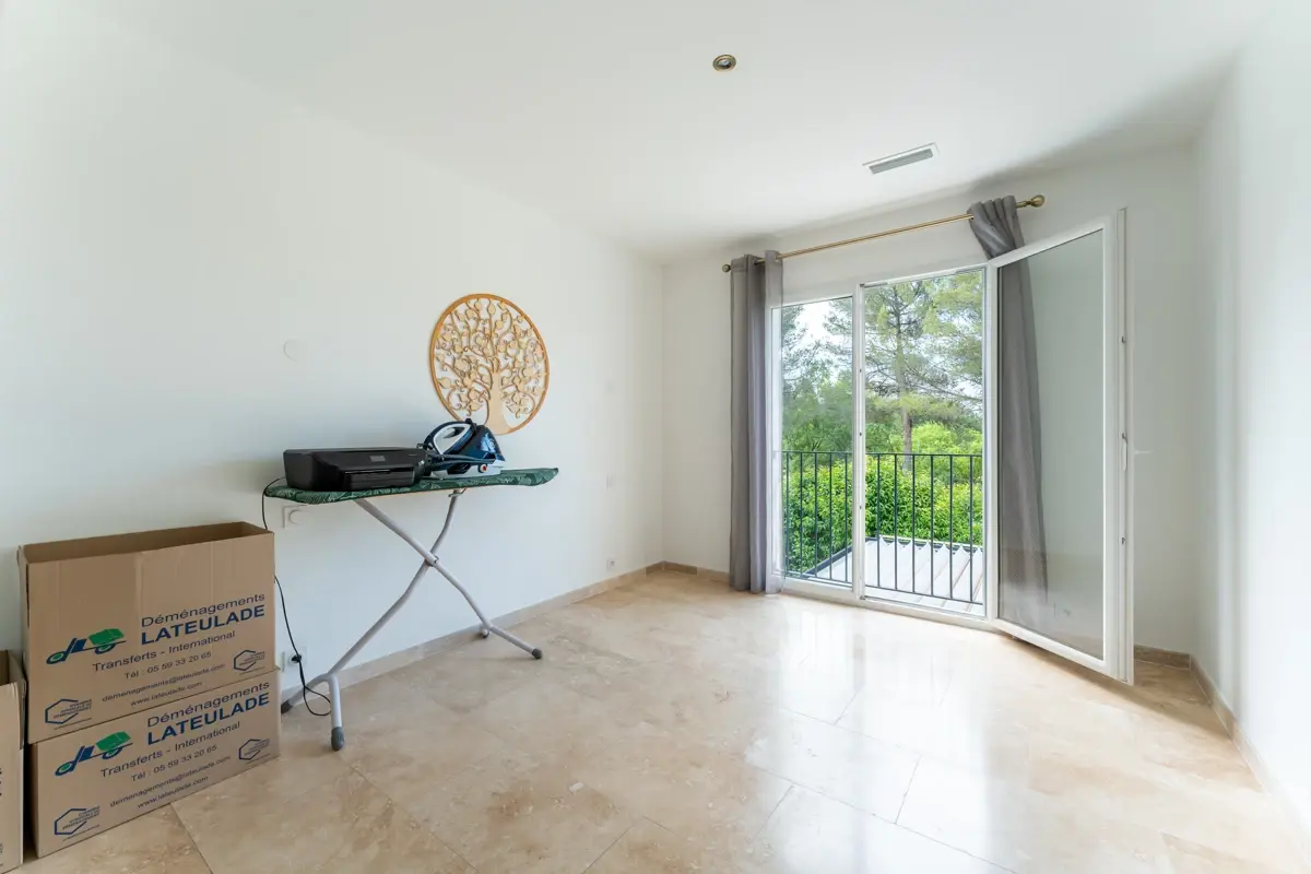 Cette maison lumineuse comprend un séjour de 53 m² avec une cuisine ouverte équipée ainsi qu'un cellier. A l'étage, retrouvez trois chambres avec placards ainsi qu'une suite parentale et son dressing, et sa salle d’eau à l'italienne. Les deux autres chambres sont desservies par une seconde salle d'eau. La maison et équipée de volets roulants électriques et de la climatisation gainable. Le travertin agrémente l'espace de matériaux de qualité.
