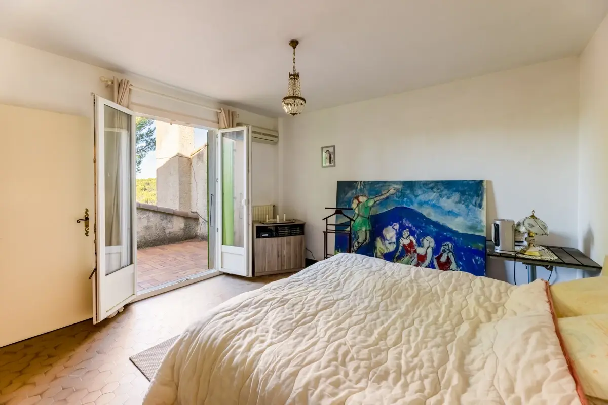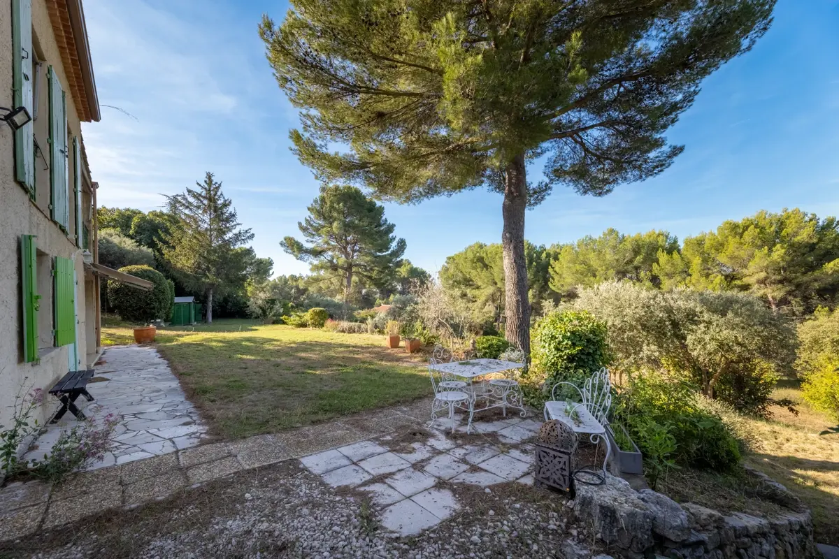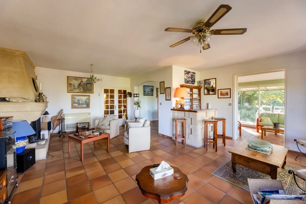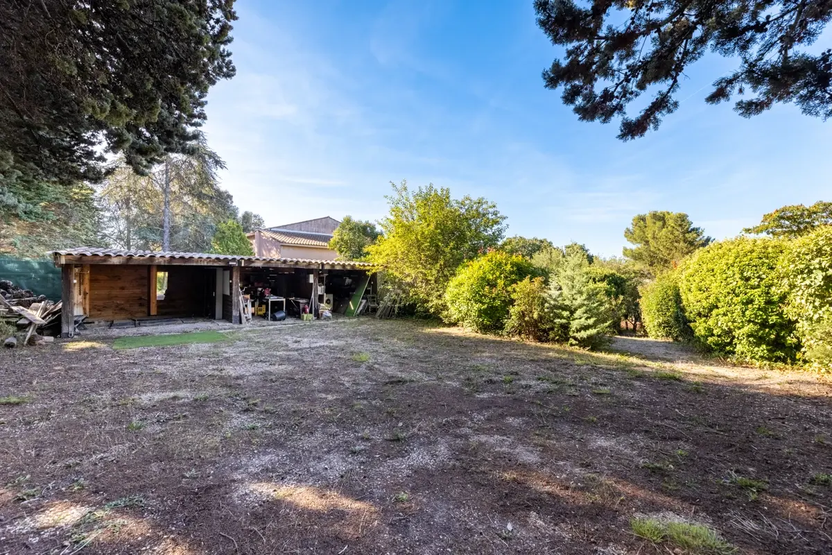 Le bien est situé sur un terrain arboré de 5950 m², planté d'oliviers, pins et arbres fruitiers. L'espace est piscinable et offre une intimité totale sans vis-à-vis.