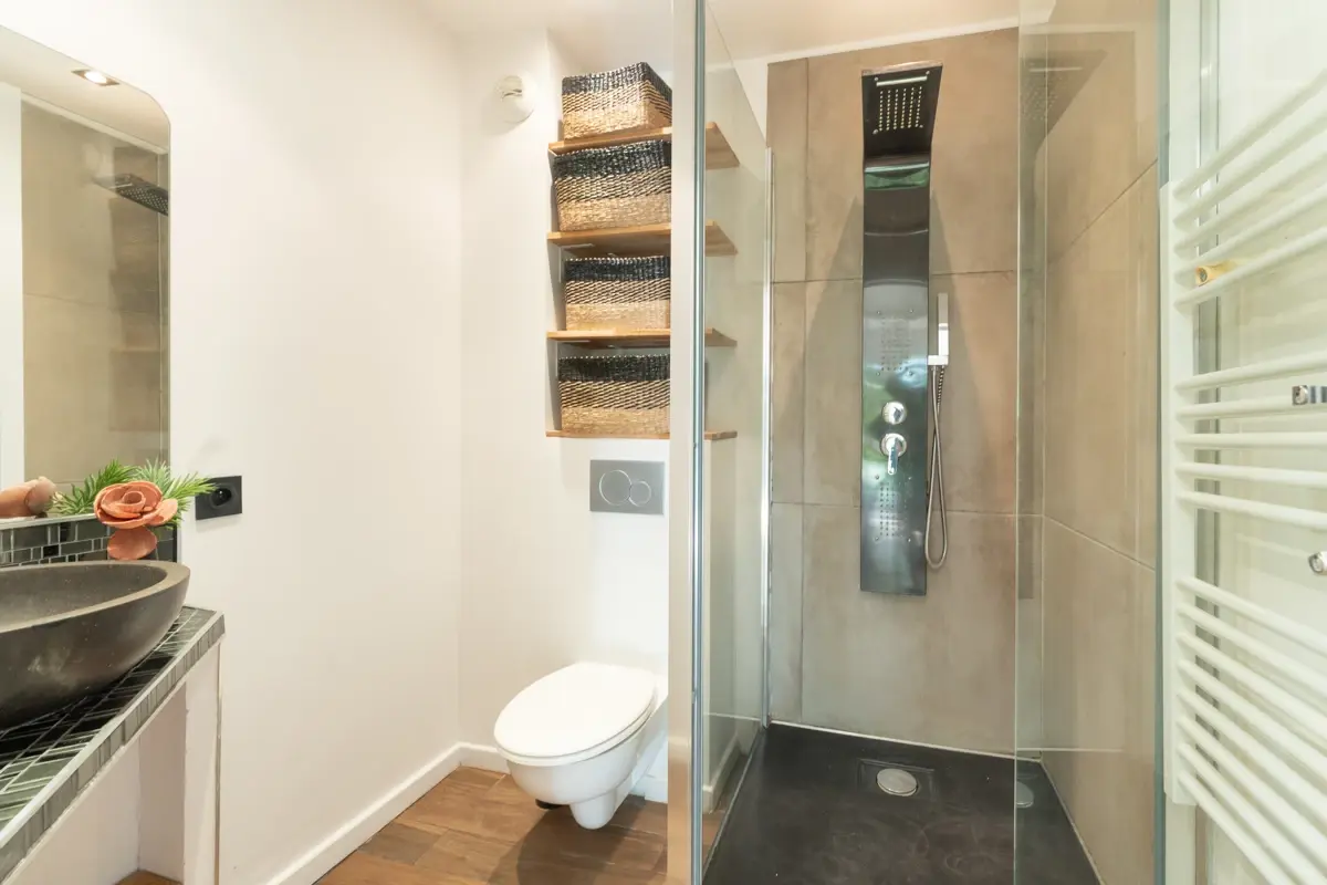 🏡 Description intérieure : L'appartement dispose d'un espace de vie de 37 m² qui s'ouvre directement sur le jardin et sa terrasse ombragée. Il comprend 5 pièces principales, avec un chauffage individuel électrique, et de belles prestations. Au premier étage, il offre deux chambres avec deux salles d'eau. Le dernier étage propose deux chambres mansardées, idéales pour des enfants, du télétravail ou en tant que chambres d'amis.