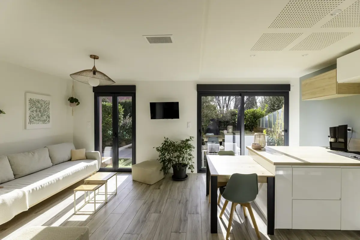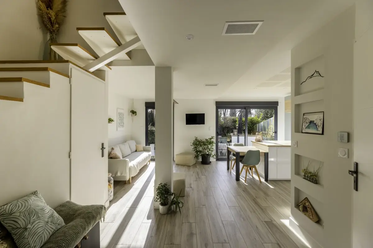 Maison entièrement rénovée en 2022. Cuisine équipée ouverte sur le séjour. Climatisation réversible dans toutes les pièces, réglable individuellement. Menuiseries aluminium avec double vitrage et ouvrants oscillo-battants. 2 salles de bain et 2 WC.