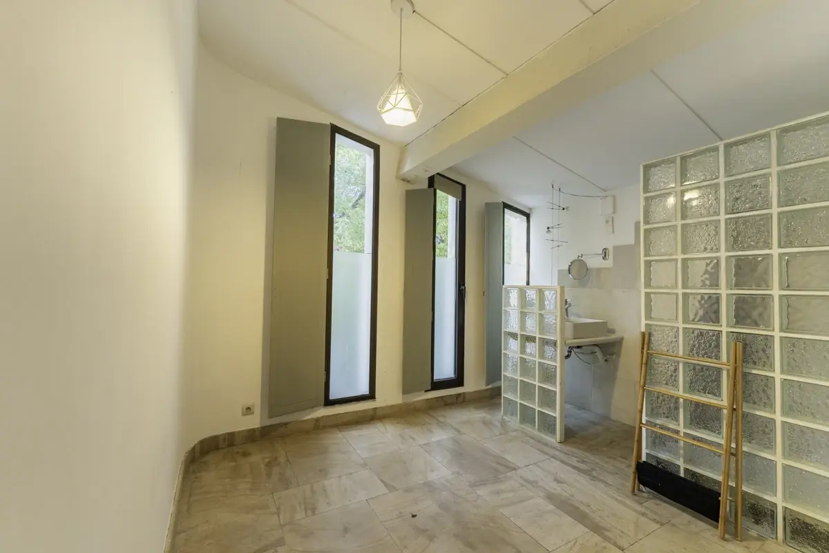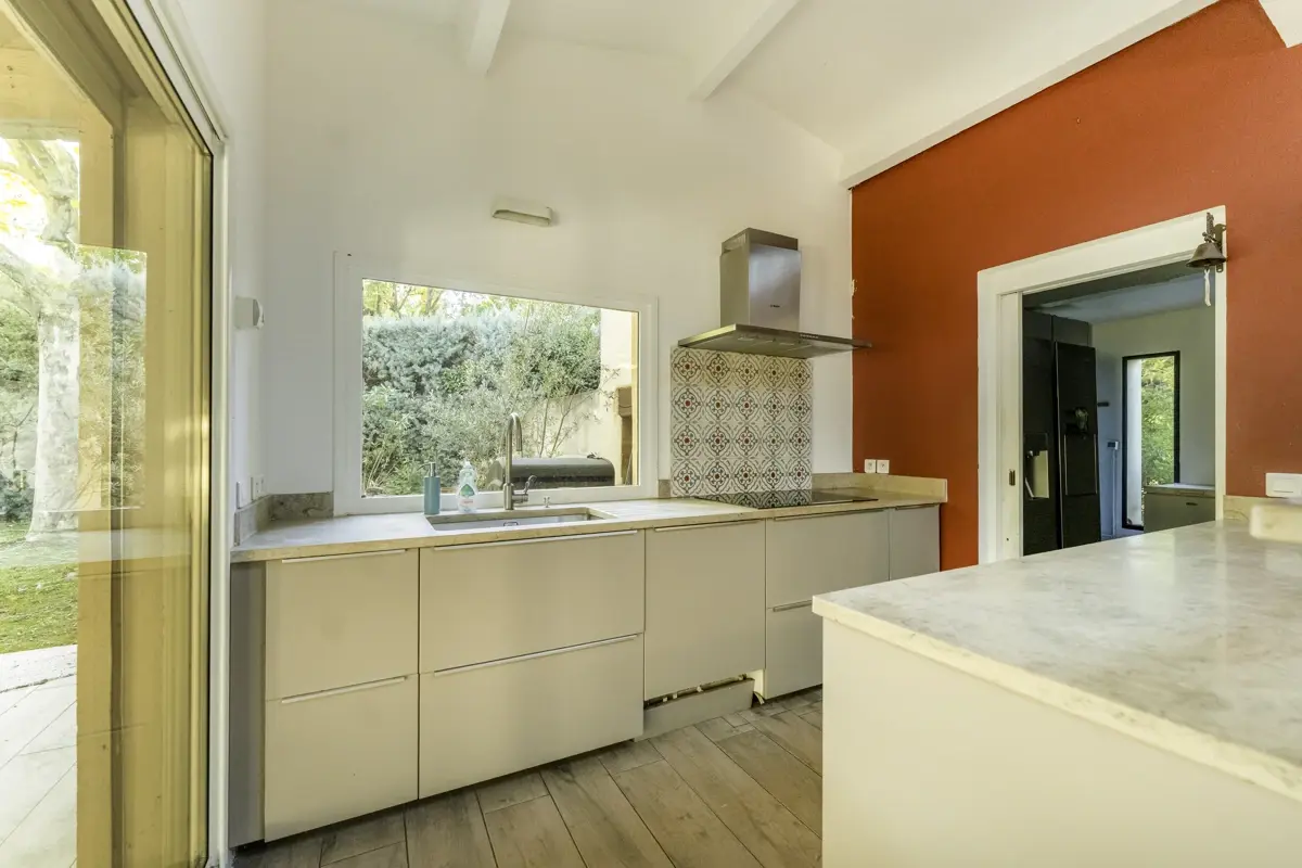 📍 Situation et contexte : Située dans un quartier recherché d'Aix en Provence, à seulement 4 km du centre, belle maison entièrement rénovée et sa maison d'amis totalement indépendante sur un terrain clos et arboré de 3250 m². La première école et l'arrêt de bus se trouvent à seulement 500 mètres, la gare à 10 km et l'aéroport de Marseille à 25 km.