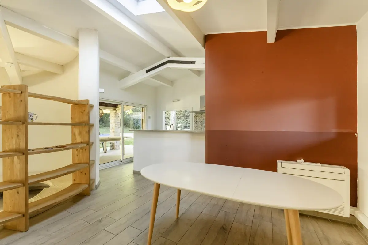 🏡 Description intérieure : La maison de plain-pied, de 250 m² environ, offre de beaux volumes et une très belle hauteur sous plafond que l'on n'imagine pas de l'extérieur. Elle comprend une entrée, un grand salon, un espace TV, une cuisine équipée ouverte, un cellier, 7 chambres (dont 4 suites), 6 salles d'eau avec WC. Deux terrasses couvertes offrent ombrage en été et se découvrent en hiver. En dépendance: une maison en pierre datant du 19ème de 30 m² environ qui a été rénovée en 2021.