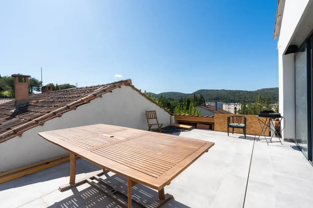 Profitez de terrasses au premier étage de 65 m² et d'une terrasse tropézienne de 30 m² au dernier étage avec vue à 180° sur la campagne.