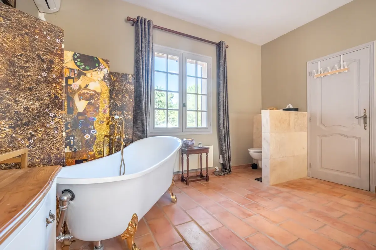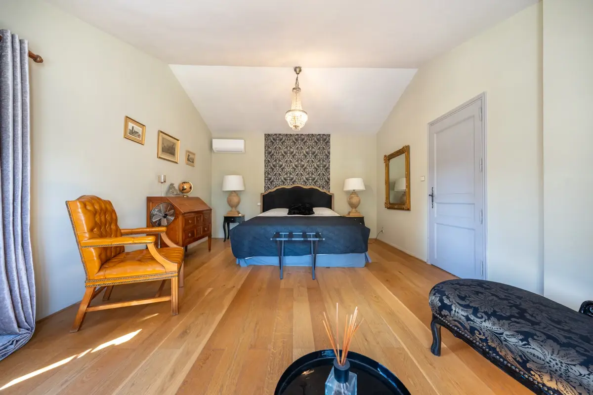 Ce mas provençal, d'une surface totale de 305 m², a été entièrement rénové par un architecte d'intérieur. Il dispose d'un grand salon avec cheminée, d'une cuisine équipée moderne et d'une terrasse orientée plein sud. Composé de 4 suites climatisées avec salles de bains privatives, il inclut également 2 appartements indépendants, 2 roulottes, une extension de 40m2 reliée à la maison principale ainsi qu'une annexe indépendante de 30 m².