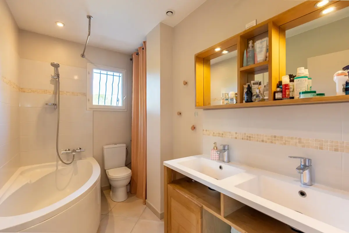 Vous apprécierez une grande terrasse orientée sud-est, donnant accès à une piscine sécurisée, parfaite pour les moments de détente en plein air.