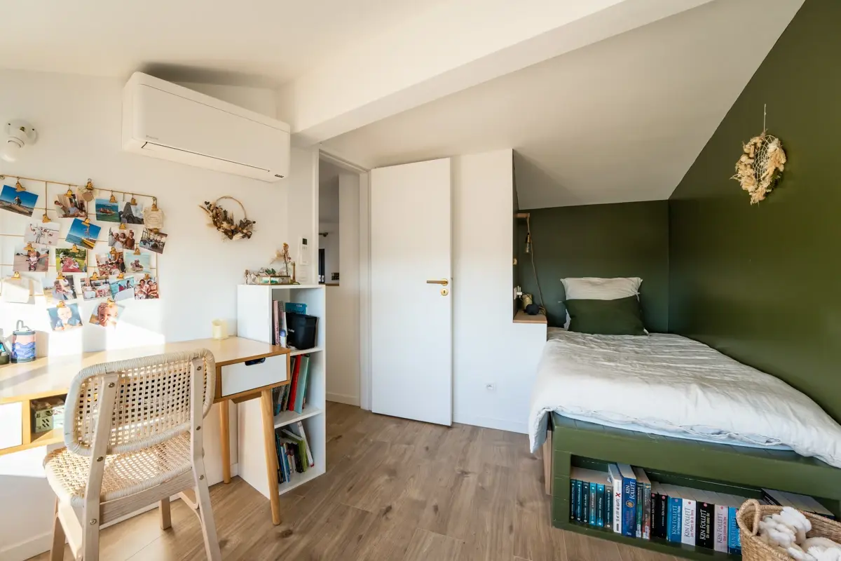 🏡 Description intérieure : La maison datant de 2015 offre un total de 6 pièces principales. Au rez de chaussée, la cuisine ouverte s'intègre parfaitement à une pièce à vivre lumineuse grâce aux grandes baies vitrées. L'ensemble est complété par 5 chambres spacieuses, répondant parfaitement aux besoins d'une famille. Le système de chauffage par pompe à chaleur réversible garantit un confort thermique en toutes saisons.