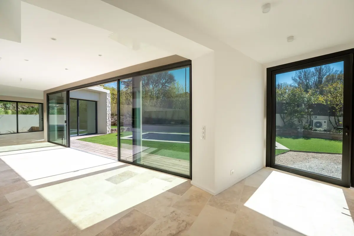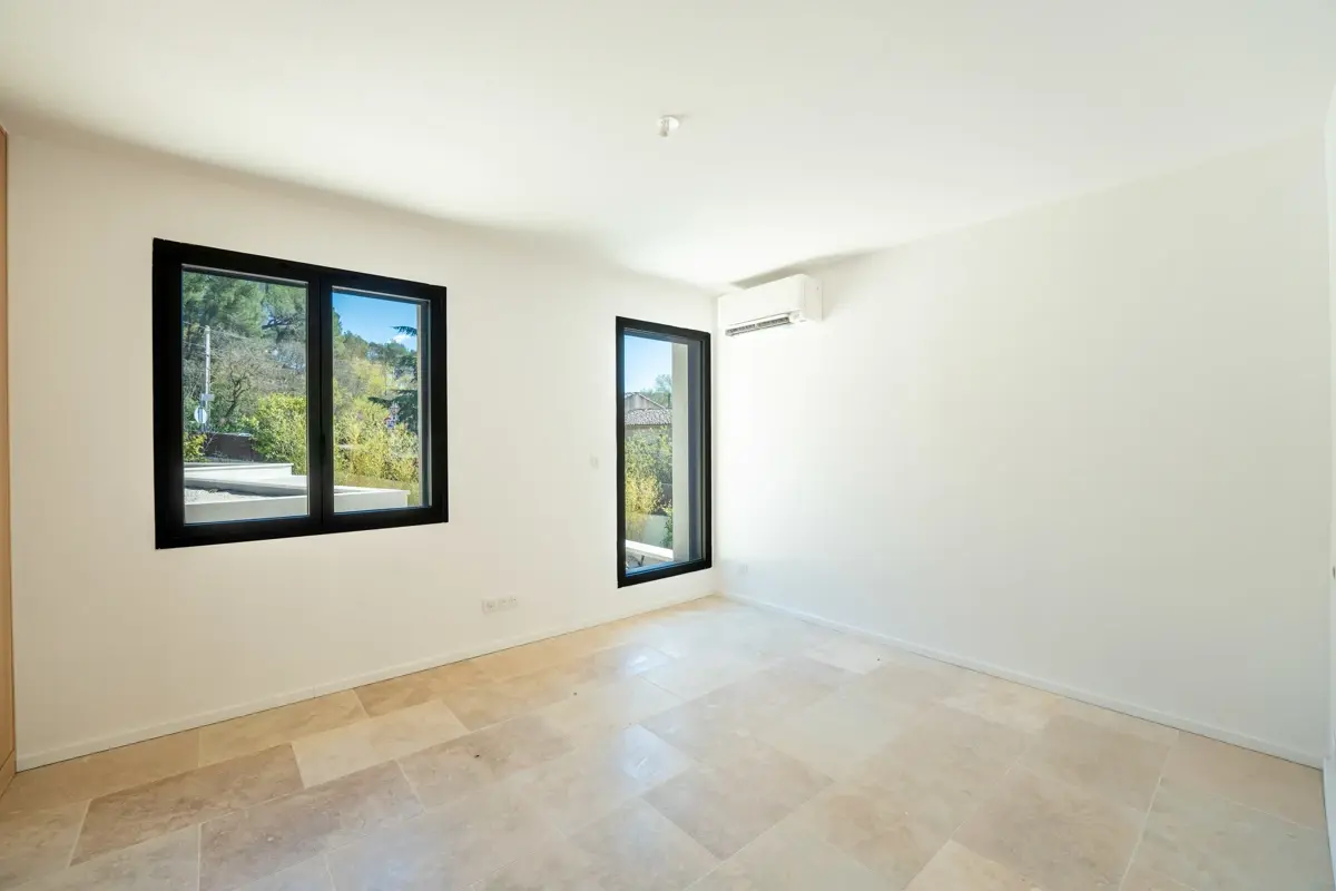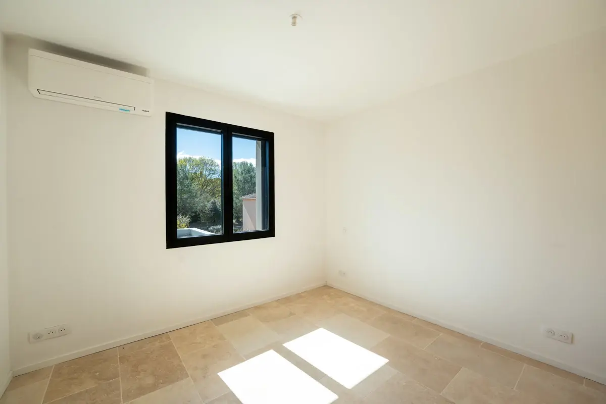 Cette maison T5 de 156 m², entièrement rénovée, allie charme provençal et prestations haut de gamme. Le rez-de-chaussée propose un hall d’entrée lumineux, un séjour spacieux ouvert sur une cuisine équipée haut de gamme, ainsi que deux chambres et une salle de bains. Un WC indépendant complète cet espace. À l’étage, deux chambres supplémentaires et une salle d’eau offrent intimité et confort. Les menuiseries Technal, le double vitrage et la climatisation réversible garantissent un confort optimal toute l’année.