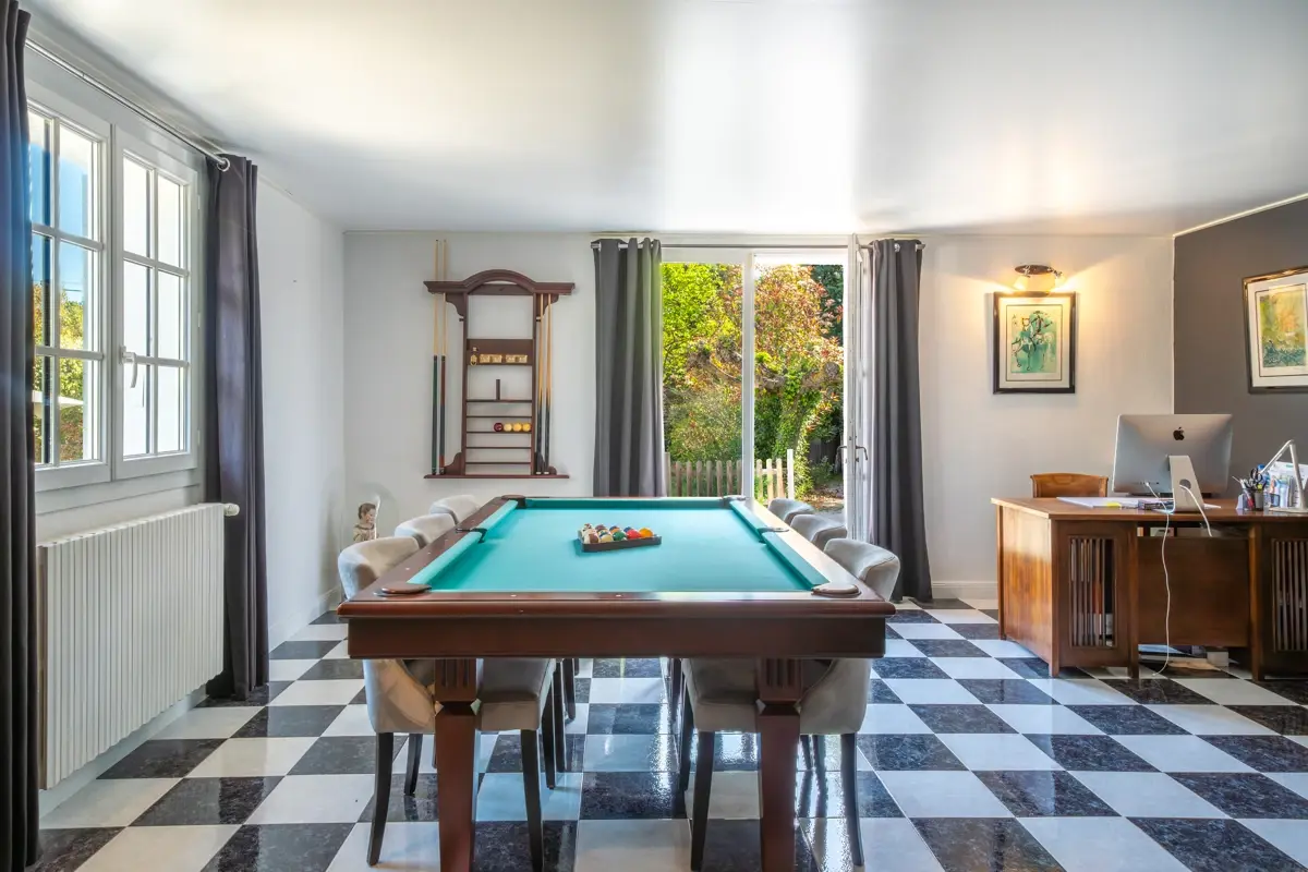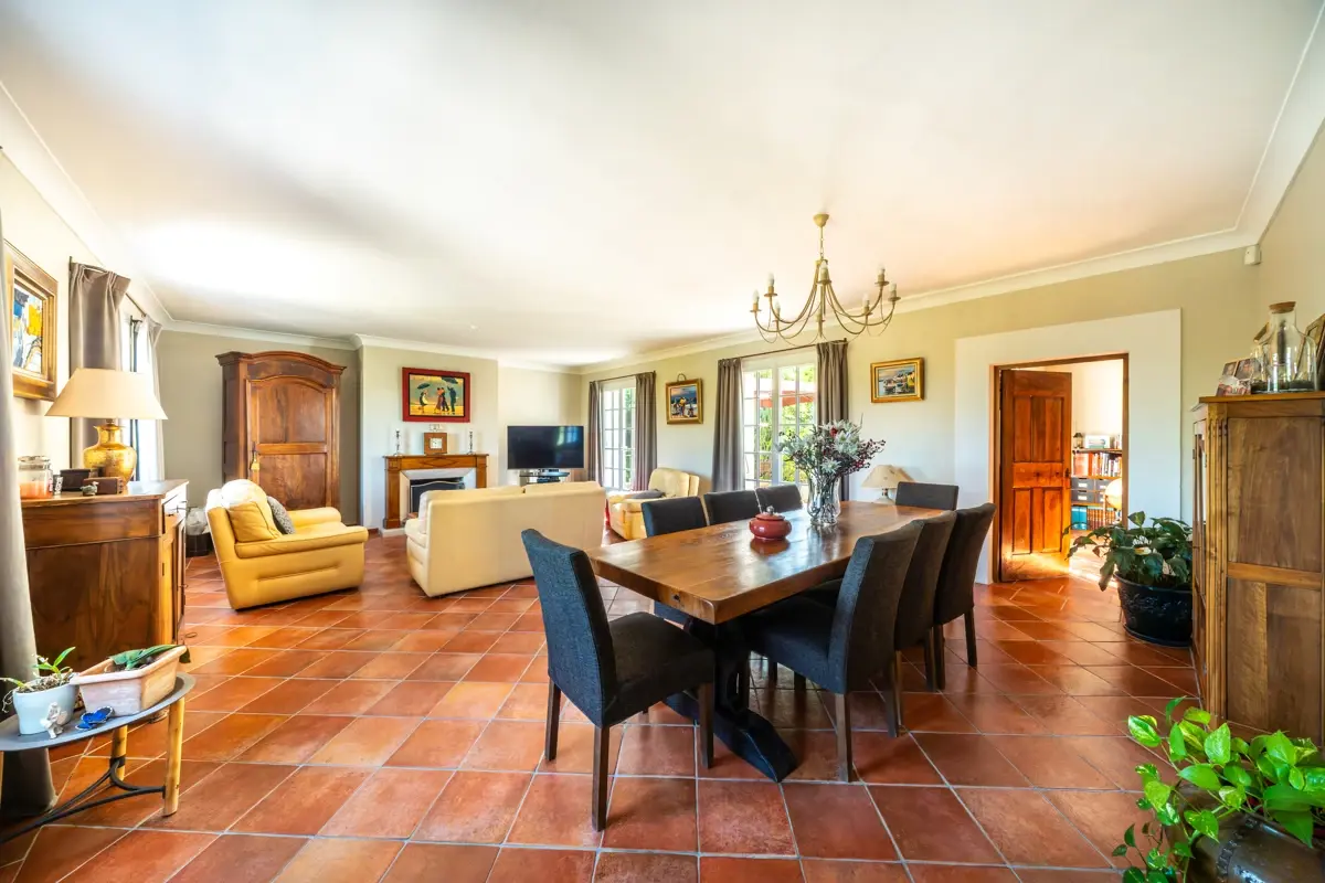 La maison de 241 m² offre un séjour lumineux de 44 m² ouvrant sur une jolie terrasse.