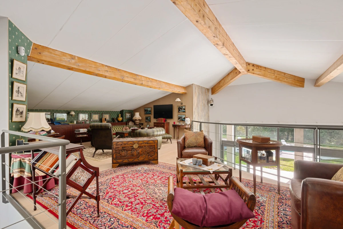 Le rez-de-chaussée dispose de 3 chambres, dont une suite parentale avec deux dressings et une salle de bains attenante. L'étage offre une mezzanine avec salon, bureau et bibliothèque, ainsi qu'une grande chambre de 80 m² sous les combles, permettant diverses utilisations.