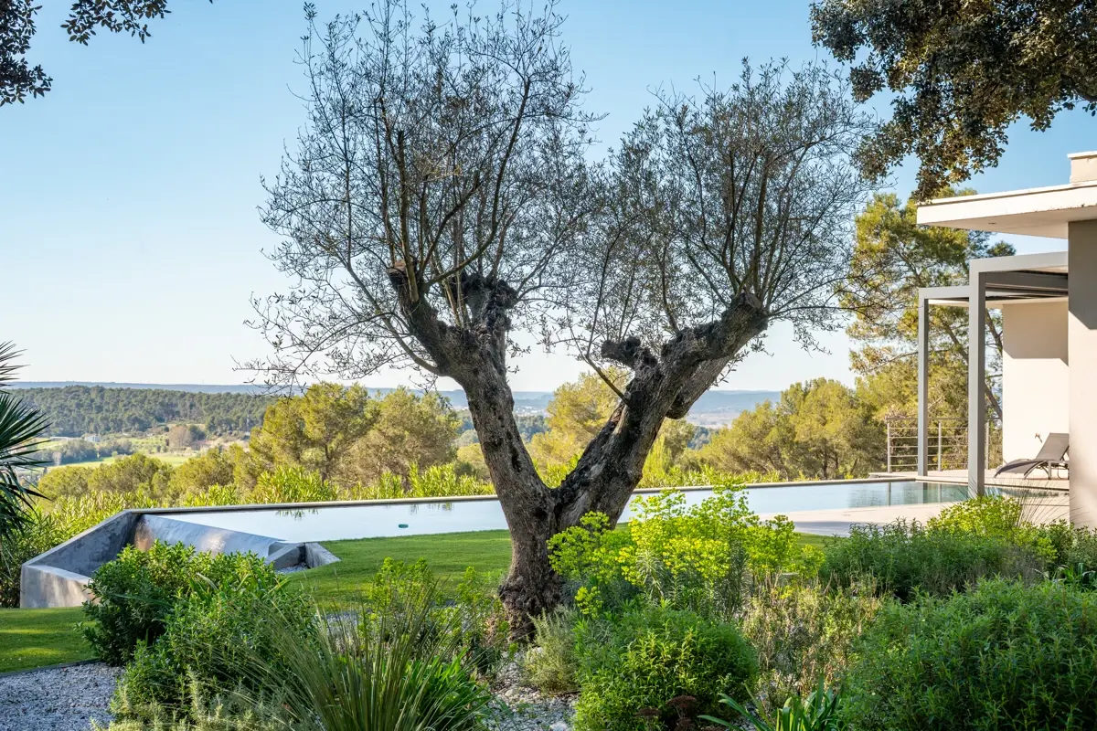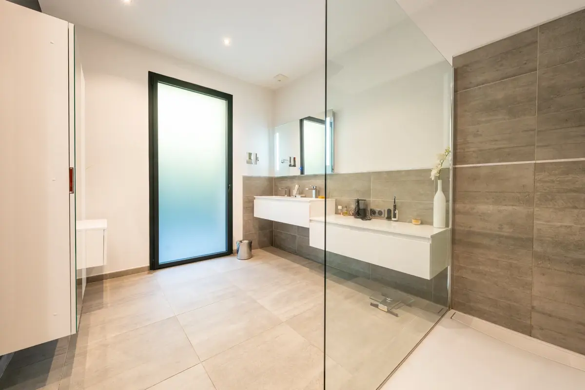 Les espaces extérieurs ont été conçus comme un prolongement naturel de la villa. Vous y découvrirez une vaste terrasse ensoleillée, sublimée par une pergola bioclimatique, ainsi qu’une élégante piscine à débordement signée Jacques Brens. Le jardin paysager, soigneusement arboré, compose un cadre intime et apaisant, idéal pour la détente comme pour la réception.
