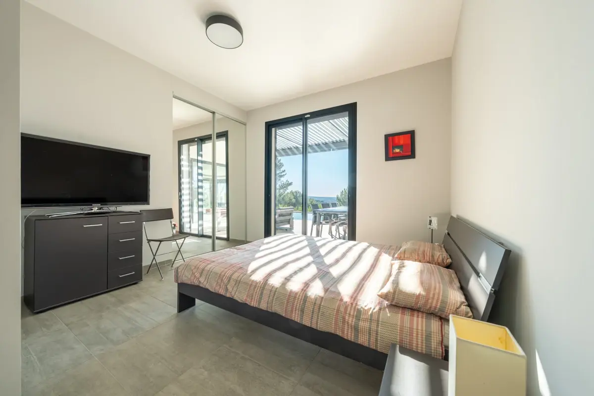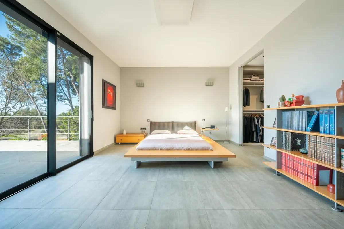 L’espace nuit se compose de trois suites raffinées, chacune disposant de sa salle de bains privative, garantissant confort et intimité. La master, véritable écrin de sérénité, bénéficie d’un dressing sur mesure et d’une vue dégagée.