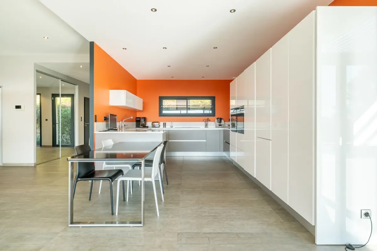 Dès l’arrivée dans le séjour, le ton est donné : espaces généreux, lignes épurées et lumière omniprésente. Le vaste séjour, baigné de lumière grâce à de larges ouvertures sur l’extérieur, séduit par ses finitions soignées et son atmosphère élégante. Il s’ouvre harmonieusement sur une cuisine contemporaine entièrement équipée, pensée comme un véritable lieu de partage et de convivialité.