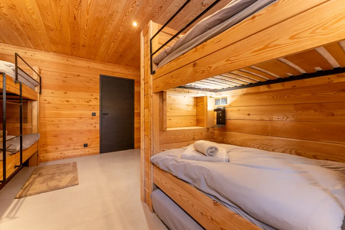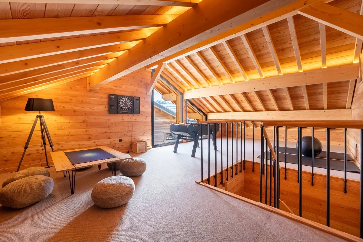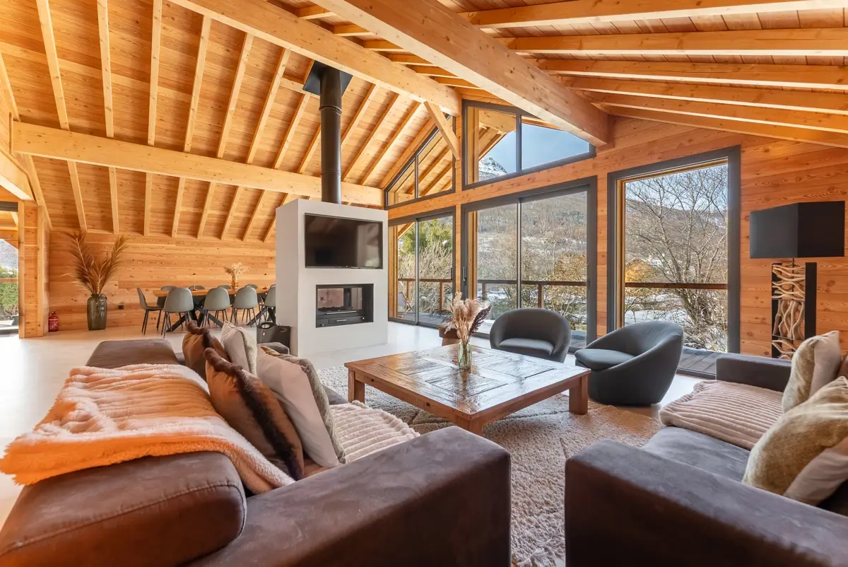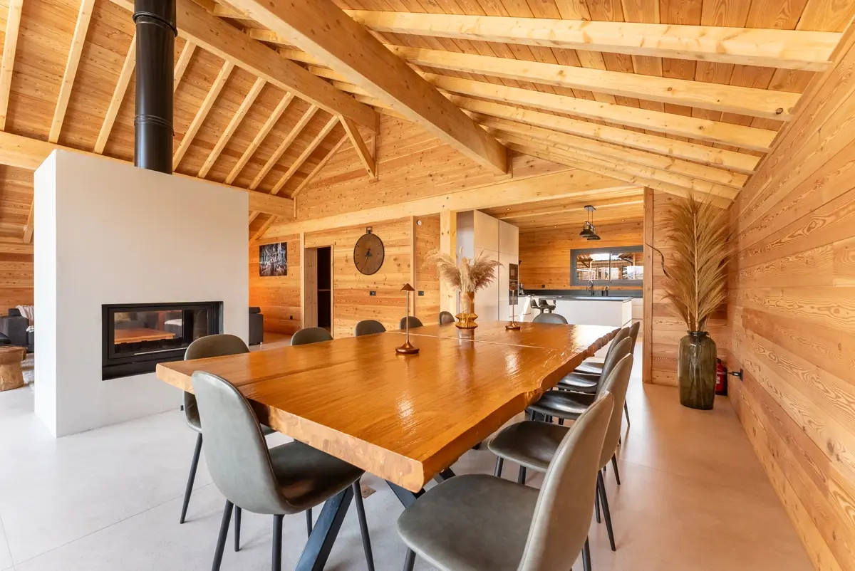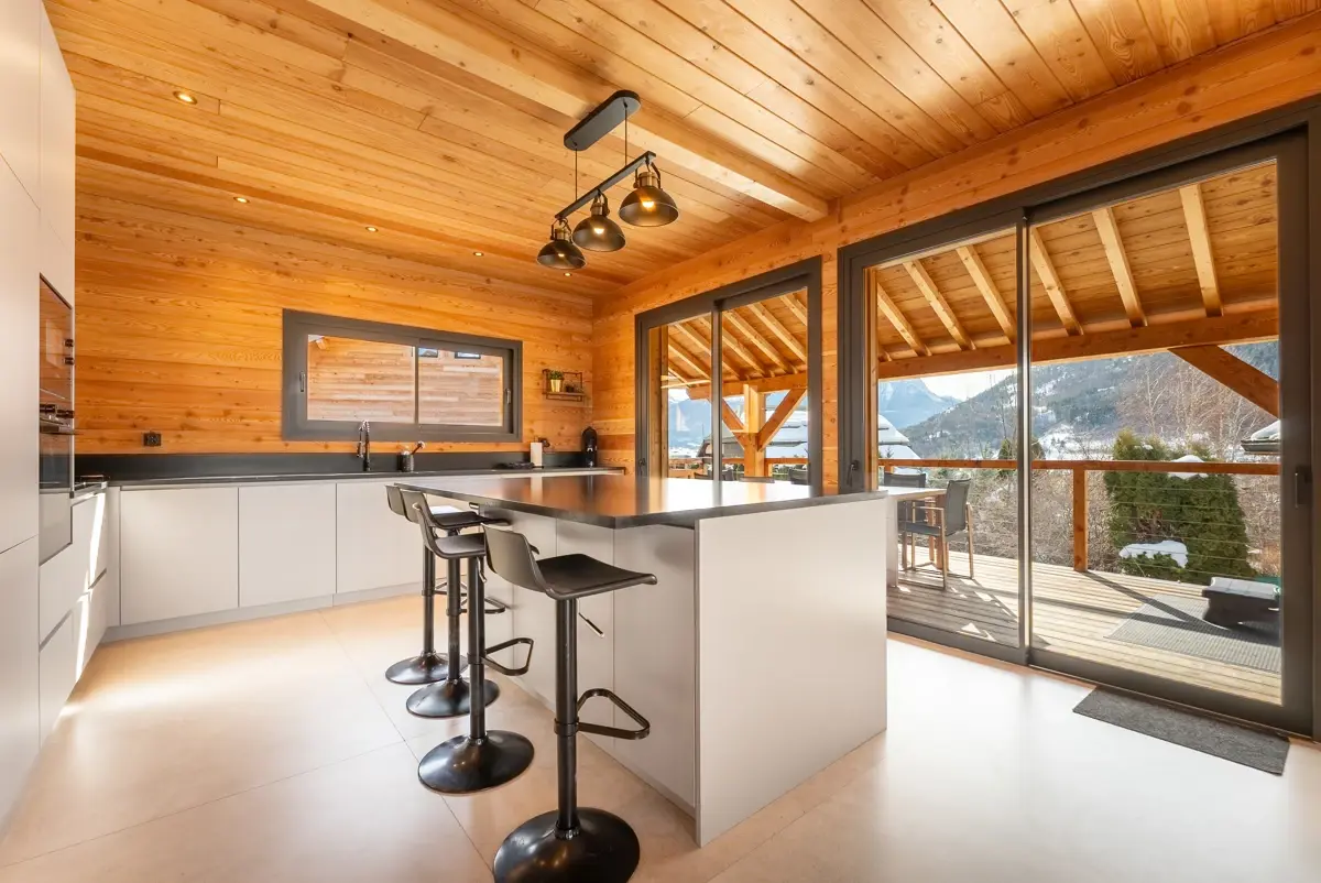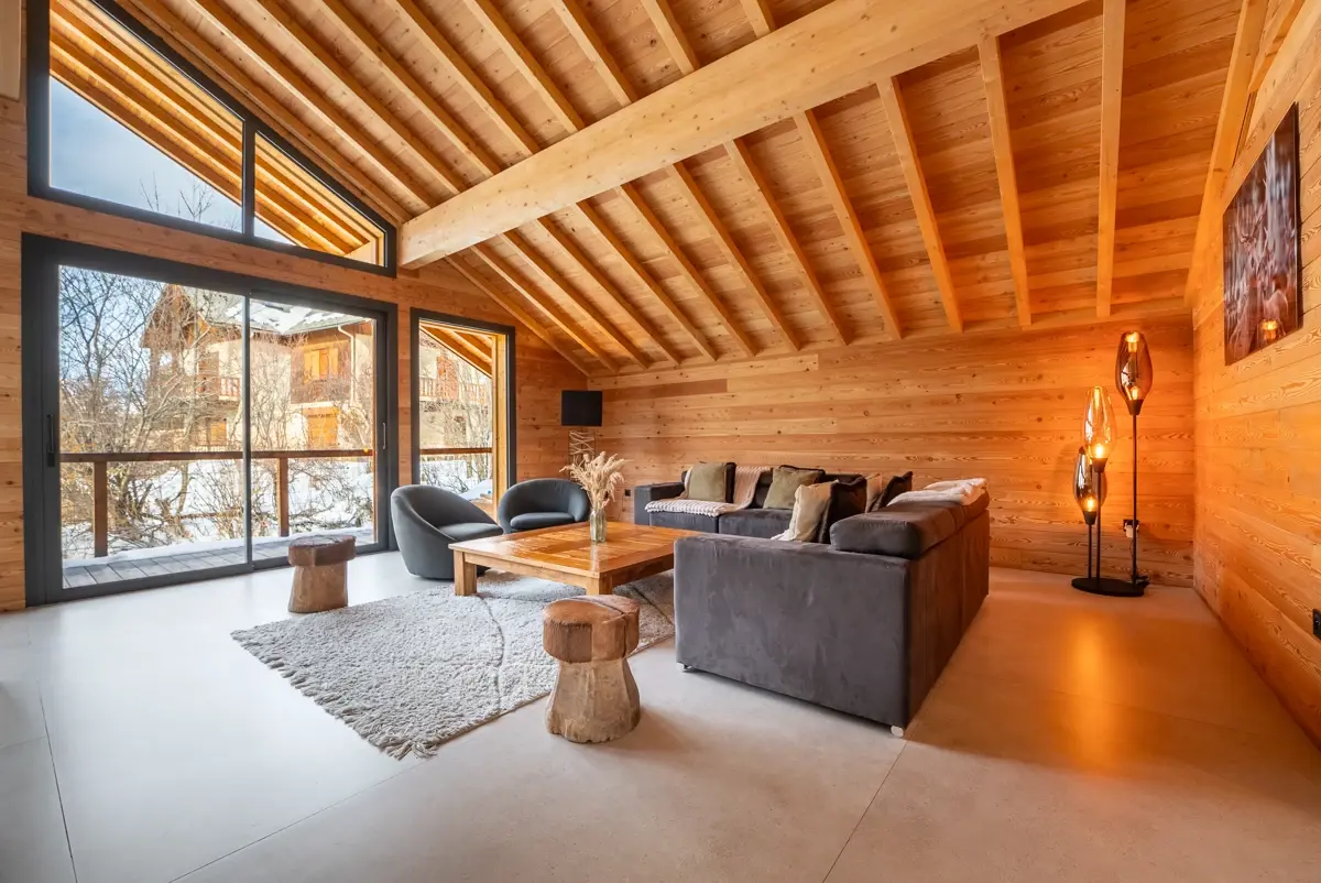 Ce chalet construit en 2024, d’une surface habitable de 255 m², offre au rez-de-chaussée une cuisine moderne ouverte sur une vaste pièce à vivre lumineuse, donnant accès à une terrasse avec jacuzzi. Un ski room avec sèche chaussure complète ce niveau.